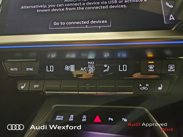 Audi A3 Sportback 30 TFSI 110HP S Line Black Edition €396p/m • Audi Sound System • Bluetooth Interface • Mobile Phone Preparation-Bluetooth • Touchscreen Stereo • Audi Drive Select • Audi Stop/Start • Auto Handbrake • Cruise Control • Alloy Wheels • Metallic Paint • S-Line Body Styling • S-Line Exterior Pack • Space Saver Spare Wheel • Air Conditioning • Armrest • Button Start-Stop • Electric Mirrors • Electric Windows • Multi-Function Steering Wheel • Onboard Computer • Privacy Glass • Rake/Reach Adjustable Steering Column • ABS • Alarm • Anti-Lock Brake System • Child Locks • Immobilizer • ISO Fix • Reverse Camera • Reversing Sensors • USB • Audi Connect • Audi Smartphone Interface • Keyless Go • Reverse Camera • USB charging ports