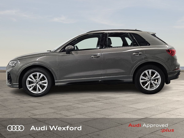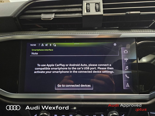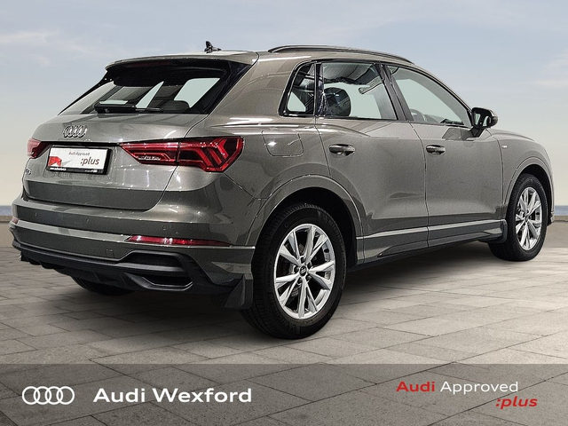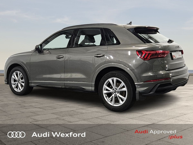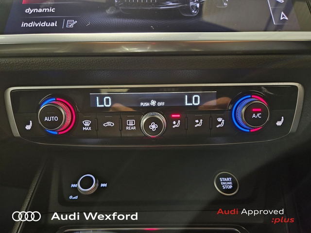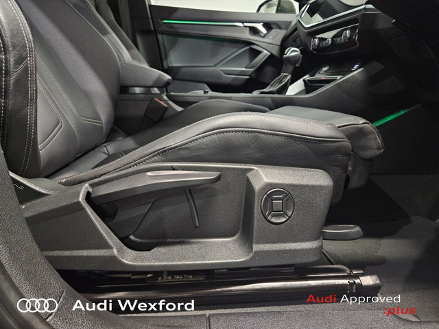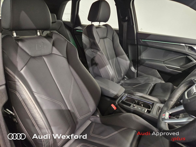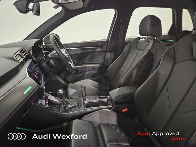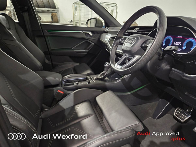 Audi Q3 35 TDI 150HP S Tronic S line Black Edition €461p/m • Audi Sound System • Bluetooth Interface • Mobile Phone Preparation-Bluetooth • Touchscreen Stereo • Audi Drive Select • Audi Stop/Start • Auto Handbrake • Cruise Control • Alloy Wheels • S-Line Body Styling • S-Line Exterior Pack • Space Saver Spare Wheel • Air Conditioning • Armrest • Button Start-Stop • Electric Mirrors • Electric Windows • Multi-Function Steering Wheel • Onboard Computer • Privacy Glass • Rake/Reach Adjustable Steering Column • Lumbar Support • ABS • Alarm • Anti-Lock Brake System • High Beam Assist • Immobilizer • ISO Fix • Reverse Camera • Reversing Sensors • Remote Central Locking • USB • Audi Connect • Audi Phone Box with wireless charging • Audi Smartphone Interface • Keyless Go • Reverse Camera • USB charging ports