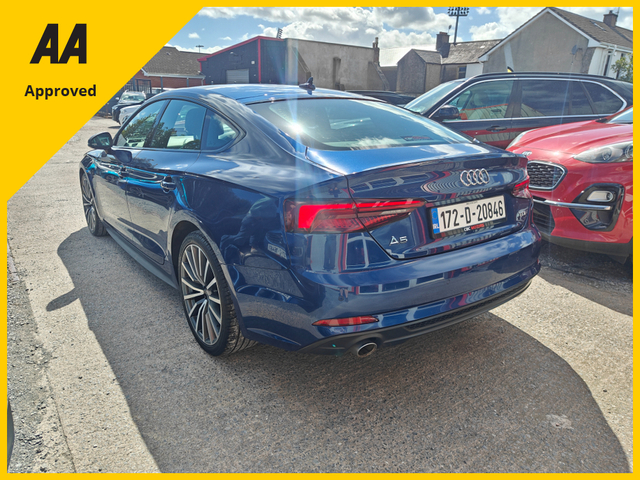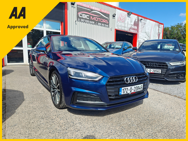Price €22,495 VIEWING BY APPOINTMENT ONLY Priced To Sell, Deposit Secures Nationwide Warranty Available Upon Request Detailed Whatsapp Video Available Upon Request *6 Months Warranty* *12 Months AA Breakdown Assist *Straight Cash Price Quoted* *Trade In Price @€23,495* *6 Months Warranty * *12 Months AA Breakdown 2017(172) Audi A5 S Line Sportback 2.0 150bhp Diesel Engine Automatic Gearbox 185,000 Kilometers Timing Belt & Waterpump Just Replaced With A Receipt To Prove 2 Keys New 2 Year NCT NCT 10-27 Scuba Blue Metallic Paint Spec Includes Bi Xenon Headlights LED Daytime Running Lights Satellite Navigation Parking Sensors Bluetooth Telephone Bluetooth Audio Electric Mirrors Electric Windows Air Conditioning Dual Climate Control Cruise Control Automatic Lights Automatic Wipers Multi Functional Steering Wheel Multiple Airbags Isofix Seats Centre Arm Rest Price €22,495 6 Month Warranty, Air Conditioning, Central Locking, CD Player, Electric Windows, Airbag, Alarm, Alloy Wheels, Cruise Control, Electric Mirrors, Fog Lamps, Immobiliser, Half Leather, Automatic Wipers, Automatic Lights, Centre Armrest, Multi-function steering wheel, Climate Control, Traction Control, Metallic Paint, Xenon Lights, Anti-Theft System, Parking Sensors, Bluetooth, New Timing Belt, EBD, Electronic handbrake, Isofix, History Checked, Finance Checked, Apple Car Play, Android Auto, Active Safety Braking / City Brake / Collision Alert, Stop/Start Button, Dual Zone Climate Control, Daytime Running Lights, 2 Keys, External Devices Connectivity, Cup holders, Remote boot/hatch/rear door release, Stability control