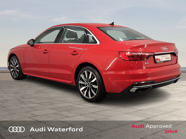 Audi A4 35 TDI SE Automatic from €469 per month • Front Sports Seats including Electric Lumbar Support • Touchscreen Stereo • Audi Stop/Start • Auto Handbrake • Cruise Control • 18"Alloys • Chrome Exterior Package • Space Saver Spare Wheel • Ambient Lighting • Armrest • Button Start-Stop • Electric Mirrors • Electric Windows • Multi-Function Steering Wheel • Heated Seats • Bluetooth Interface • Auto Lights and Wipers • Child Locks • Electronic Stability Programme (ESP) • Front and Rear Park Assist • Immobilizer • LED Headlights • Multiple Airbags • Reverse Camera • 3 Zone Climate Control • Audi Lane Assist • Audi Smartphone Interface • Audi Virtual Cockpit • Keyless Go