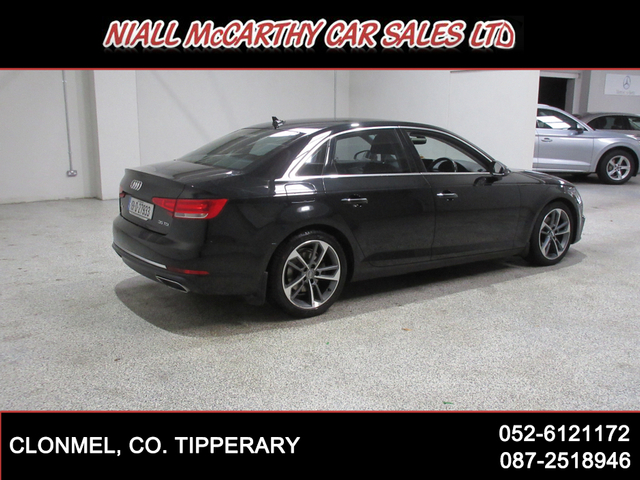 Price listed includes a €2,000 scrappage/min trade in allowance for an older car. Retail price is €21,995. Buy this car for €87 per week with a €3,000 deposit on our very popular Scrappage Scheme. Very impressive 191 Reg Audi A4. Comes in mint condition, well maintained, fully serviced and a long NCT test. Extras include front & rear parking sensors, privacy glass, heated leather seats, heated mirrors, auto lights & wipers, sat nav, cruise control, air con, dual climate control and much more. Why not call today for a test drive and have finance arranged. Air Conditioning, Immaculate condition, Electric Windows, Alloy Wheels, Cruise Control, Electric Mirrors, Immobiliser, Full Leather, Privacy Glass, Heated Seats, Automatic Lights, Centre Armrest, Multi-function steering wheel, Satellite Navigation, Traction Control, Metallic Paint, Parking Sensors, Bluetooth, Remote Central Locking, Electronic handbrake, Isofix, History Checked, Finance Checked, Stop/Start Button, Dual Zone Climate Control, 2 Keys