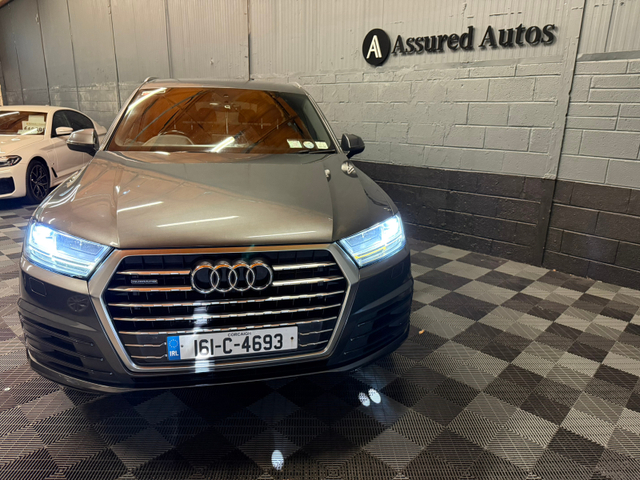 161 Audi Q7 3Ltr TDi SLine Quattro 7 Seat Finished In Daytona Grey Metallic Complete With SLine Sport Black Leather Interior SLine : Digital Cock Pit / Reverse Camera / Nav / Heated Seats / Xenon / Cruise Etc A Very Well Kept Jeep Complete With A Comprehensive Service History Air conditioning, Climate control, Dual zone climate control, Armrest, Keyless entry, Electrically adjustable seats, Electric boot, Electric side mirrors, Electric windows, Electric handbrake, Heated seats, Lumbar support, Multi-function steering wheel, Rain sensor, Spare tyre, Split rear seats, Gear shift paddles, Bluetooth, 12v power outlet, Radio, USB connection (front), Cruise control, Hill hold assist, Navigation system, Front parking sensors, Rear parking sensors, Remote boot release, Roof rails, Speed limiter, Start-stop system, Voice control, Digital instrument panel, Alloy wheels, Leather interior, Leather steering wheel, Spoiler, Sports seats, Tinted windows, Auto lights (dusk sensor), Daytime running lights, Fog lights, LED headlights, ABS, Anti collision system, Alarm system, Emergency brake assist, Central locking, Remote central locking, Driver-side airbag, Immobilizer, Isofix, Tyre pressure monitor, Passenger-side airbag, Seat belt warning, Side airbag, Stability control, Traction control, 4WD