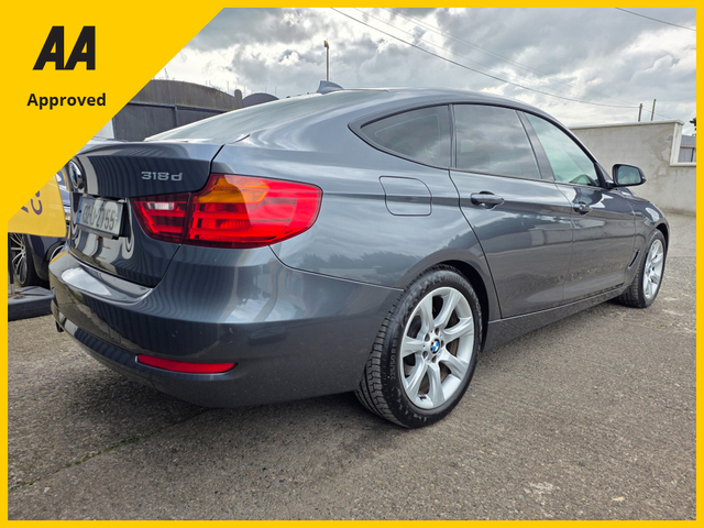 * 2013 BMW 318D GRAN TURISMO SE MODEL * 2.0 DIESEL WITH AUTOMATIC GEARBOX * COMES IN NICE METALLIC GREY COLOUR * 18 INCH ALLOY WHEELS (4 GOOD TYRES) * PANORAMIC SUNROOF * CREAM LEATHER INTERIOR * HEATED SEATS * PARKING SENSORS * REVERSE CAMERA * CRUISE CONTROL * SAT NAVIGATION * ELECTRIC TAIL GATE * DUAL CLIMATE CONTROL WITH A/C * PRIVACY GLASS * MULTI-FUNCTION STEERING WHEEL * BLUETOOTH, AUX AND USB CONNECTIONS * IRISH CAR FROM NEW * ONLY TWO PREVIOUS OWNERS * SERVICE HISTORY * NEW NCT TEST TILL 07/26 * LOW TAX BRACKET € 270 PER ANNUM * 93025 MILES / 149709 KM * 2 ORIGINAL KEYS * CAR LOOKS AND DRIVES VERY WELL * ANY INSPECTION WELCOME * We are proud to be an AA approved and 5 star rated dealer. * All our cars have been through a 101-point AA approved inspection and comes with 12 months free AA membership, roadside assistance and breakdown. * This car has been checked by motor check.ie (full history report from new included HPI clear) to ensure peace of mind for the customer and to in still confidence when purchasing a pre-owned vehicle * All our cars come serviced, health checked and valeted * 3 months warranty included * Trade-ins welcome * For more information or arrange viewings please call 0857444451 * Due to a high turnover in stock, we recommend that you contact our sales team to make sure the car is still available and to make an appointment