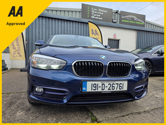 * 2019 BMW 116D SPORT MODEL * 1.5 DIESEL WITH AUTOMATIC GEARBOX * COMES IN NICE METALLIC BLUE COLOUR * 17 INCH ALLOY WHEELS (4 GOOD TYRES) * IVORY LEATHER INTERIOR * SEMI BUCKET SPORT SEATS * PARKING SENSORS * AIR CONDITIONER * SAT NAVIGATION * MULTI-FUNCTION STEERING WHEEL * BLUETOOTH AND USB CONNECTIONS * IRISH CAR FROM NEW * FULL SERVICE HISTORY * NCT TEST TILL 03/27 * LOW TAX BRACKET € 200 PER ANNUM * 79156 MILES / 127389 KM * 2 ORIGINAL KEYS * CAR LOOKS AND DRIVES VERY WELL * ANY INSPECTION WELCOME * TO APPLY FOR FINANCE PLEASE VISIT OUR WEBSITE WWW.GREENMILEMOTORS.IE * We are proud to be an AA approved and 5 star rated dealer. * All our cars have been through a 101-point AA approved inspection and comes with 12 months free AA membership, roadside assistance and breakdown. * This car has been checked by motor check.ie (full history report from new included HPI clear) to ensure peace of mind for the customer and to in still confidence when purchasing a pre-owned vehicle * All our cars come serviced, health checked and valeted * 3 months warranty included (12 months warranty available) * Trade-ins welcome * For more information or arrange viewings please call 0857444451 * Due to a high turnover in stock, we recommend that you contact our sales team to make sure the car is still available and to make an appointment