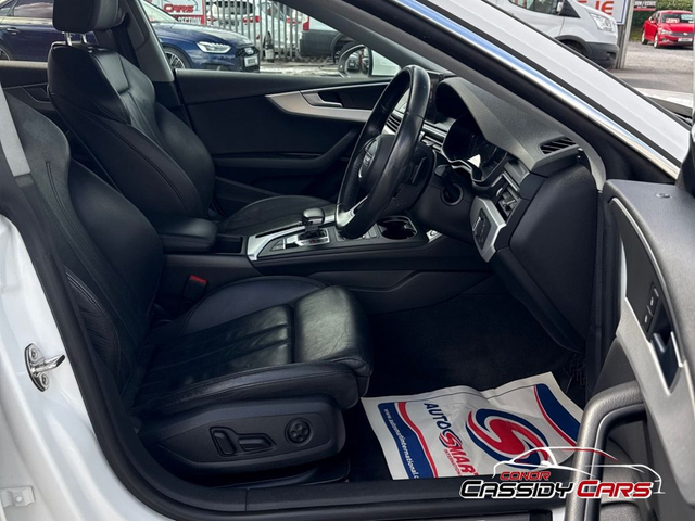 * 2019 AUDI A5 TDI2.0 TDI Sport 40 190PS *AUTO* JUST AFTER ARRIVING INTO STOCK * - Straight Sale Discount Price : €27,950 - Retail/Trade in Price : €28,950 STUNNING CAR FINISHED WITH A MASSIVE RANGE OF FEATURES INSIDE AND OUT INCLUDING - LEATHER INTERIOR - HEATED SEATS - REVERSING CAMERA - ELECTRIC BOOT - PADDLE SHIFTERS - CRUISE CONTROL - MULTI FUNCTIONAL STEERING WHEEL AND MUCH MORE. FINISHED IN STUNNING WHITE. OPTIONAL UPGRADED ALLOYS €800 At Conor Cassidy Cars, our mission is simple: to offer top-quality cars at unbeatable prices. Each vehicle is meticulously inspected by our in-house service team. This includes: • A full service • Warranty • Complete vehicle preparation • Guaranteed NCT pass Safety, reliability, and customer satisfaction are at the heart of everything we do. We accept all trade-ins, which can be redeemed against your new car purchase. As authorized credit intermediaries, we arrange flexible financing with: • AIB • Bank of Ireland • Lombard • Close Brothers • And many more to ensure you get the best available rate. Same-Day Finance Approval • 95% success rate • Weekly payments tailored to your deposit or trade-in Contact our finance manager to explore your payment options today! Additional Benefits Include: • Warranties ranging from 6 to 24 months • A full Cartell history report for peace of mind • Comprehensive service history from new With every car purchase, we guarantee: • A full service • Professional interior and exterior detailing • VRT to the buyer’s county • A new 2-year NCT Why Choose Conor Cassidy Cars? • Nationwide Warranty • Nationwide Delivery • Flexible Financing Options • Trade-Ins Welcome Our Accolades: • All-Ireland Accredited Business • Fastest Growing Used Car Dealership in Connacht • Award-Winning Social Media (2020, 2024) • Best Online Marketing in Connacht (2021) • All-Ireland Winner of “Best Online Marketing” (2021) • Best Online Presentation in Connacht (2023) SIMI-Approved Dealer Buying from a SIMI-accredited member ensures total peace of mind when purchasing a used car. Our reputation is built on trust, performance, and customer satisfaction. Don’t just take our word for it—check out our glowing reviews! Get in Touch Today! Conor: (087) 284 0539 Darren: (086) 450 4943 Pedro: (083) 460 0343 Office: (090) 662 8310 “WHERE QUALITY MEETS VALUE @ CCC.IE” Thank you for considering Conor Cassidy Cars. Located on Lanesborough Road in Roscommon, we’re here to help you find your dream car. Visit our showroom, give us a call, or click the inquiry link to connect with our team. We look forward to serving you! Bluetooth,Centre Armrest,Climate Control,Cruise Control,Electric Mirrors,Electric Windows,Electronic handbrake,Six speed transmission,Air Conditioning,Alarm,Anti-Theft System,Central Locking,Keyless Entry,Multiple Air Bags,Parking Sensors,Rain Sensors,Remote Central Locking,Traction Control,Alloy Wheels,Metallic Paint,Privacy Glass,Rear Spoiler,All-Leather Seats,Heated Front Seats,Multi-Function Steering Wheel,Sat Nav,Selectable Drive Mode,Stop/Start Button,Automatic Lights,Automatic Wipers,Front Parking Sensors,Isofix Points,Leather Upholstery,LED Headlights,USB Connection,Cup Holders,Remote Door Release