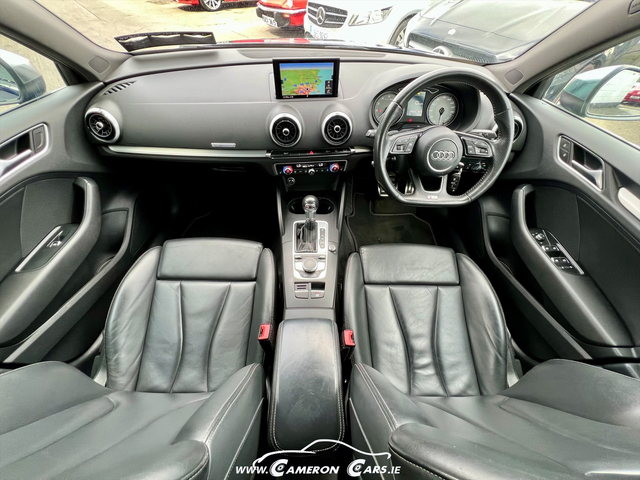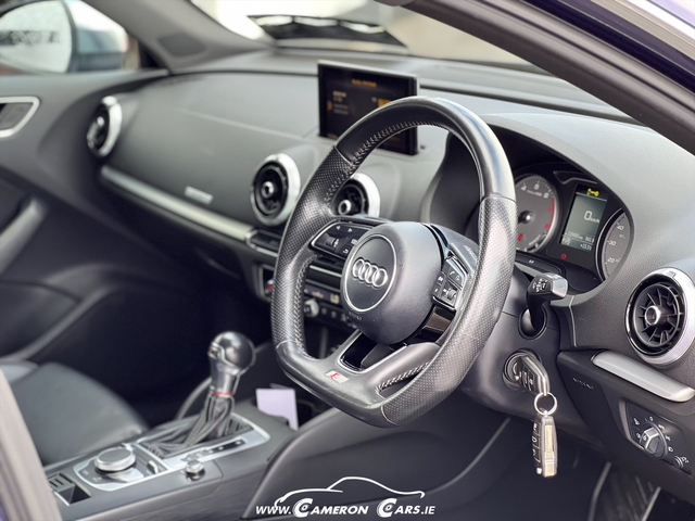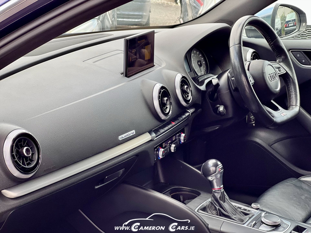 Welcome to CameronCars! We are thrilled to have you here. Our dedicated team is ready to assist you in finding the perfect vehicle that fits your needs and budget. 2017 Audi S3 4-Door SAPPHIRE BLUE Excellence Meets Performance The Ultimate Hot Hatch Aggressive, Luxurious & Thrilling Performance & Power 2.0L TFSI Turbocharged Engine 310 PS, 0-62mph in 4.6s Quattro AWD) S-Tronic DSG Gearbox Lightning-fast shifts Audi Drive Select Customise throttle, steering & suspension Performance Steering Wheel Thick-rimmed, flat-bottomed for maximum control Uniroyal Sport Tyres Unmatched grip & precision Stunning chrome pack Style Sapphire Blue Paint Deep, menacing gloss finish TTRS Alloys 19" aggressive styling Black Leather Interior Sport seats with S3 embossing Privacy Glass Sleek, stealthy presence MMI Navigation Plus High-res infotainment Premium Sub Sound System concert-quality audio 2 Keys Present This S3 Delivers Exhilaration Every Drive. Central Locking, Electric Windows, Airbag, Rear Spoiler, Centre Armrest, Multi-function steering wheel, Satellite Navigation, Traction Control, Anti-Theft System, Bluetooth, EBD, Isofix, Active Safety Braking / City Brake / Collision Alert, Stop/Start Button, External Devices Connectivity, Cup holders, Remote boot/hatch/rear door release, Stability control