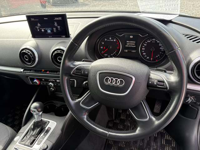 STUNNING LOOKING A3 WITH HUGH SPEC.SAT NAV,CLIMATE CONTROL,CRUISE CONTROL,FRONT AND REAR PARKING SENSORS,REVERSING CAMERA,ELECTRIC FOLDING AND HEATED MIRRORS,ALLOYS,FRONT FOG LAMPS,BLUETOOTH,AUTO LIGHTS AND WIPERS,ANDROID CARPLAY,MULTI FUNCTION STEERING WHEEL ETC.