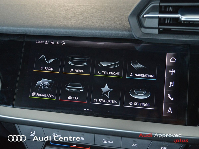 Audi A3 30 TDI 116HP • Audi Music Interface • MMI Radio Plus • Audi Stop/Start • Auto Handbrake • Cruise Control • 16"Alloys • High Gloss Pack • Ambient Lighting • Armrest • Button Start-Stop • Door Sills with Aluminium Inlays • Front/Rear Floor Mats • Multi-Function Steering Wheel • Rake/Reach Adjustable Steering Column • 3 Spoke Sports Steering Wheel • Leather Steering Wheel • ABS • Alarm • Child Locks • Daytime Running Lights • Electronic Stability Programme (ESP) • Hill Hold Assist • Immobilizer • LED Headlights • Light and Rain Sensor • Multiple Airbags • Rear Park Assist • USB • Speed Limiter • Lane departure warning • Swerve assist and turn assist • Audi Connect • Audi Smartphone Interface • Audi Virtual Cockpit • Pre sense city