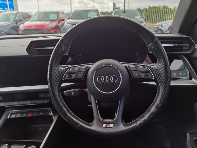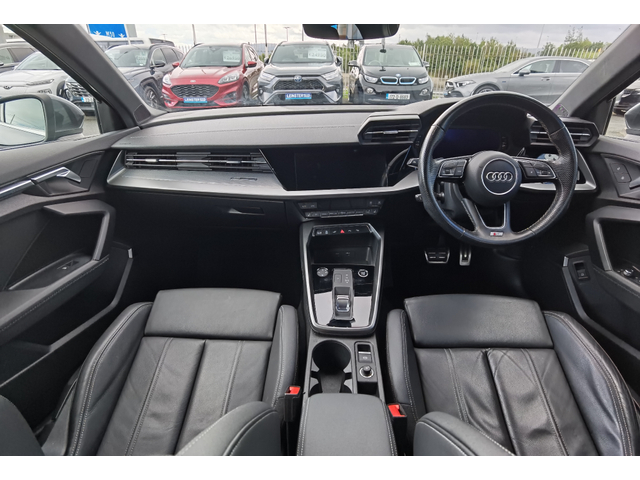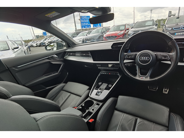 DRIVE AWAY TODAY IN THIS INCREDIBLE VALUE AUDI A3 1.4 40TFSI E S LINE SPORTBACK. THE MASSIVE SPECIFICATION INCLUDES - FRONT AND REAR PARKING SENSORS - REVERSE CAMERA - FULL LEATHER S LINE INTERIOR - HEATED SEATS - VIRTUAL COCKPIT - CRUISE CONTROL - LANE DEPARTURE WARNING - AUTOMATIC LIGHTS - ELECTRIC FOLDING WING MIRRORS - HEATED WING MIRRORS - APPLE CARPLAY - ANDROID AUTO - BANG & OLUSFEN SOUND SYSTEM - BLUETOOTH - USB-C - DUAL AIR CONDITIONING - SAT NAV - TOUCHSCREEN - 2 KEYS - FULL SERVICE HISTORY - BRAND NEW NCT - ALL IMPORT CHARGES INCLUDED ALL TRADE INS WELCOME. FINANCE AVAILABLE. DROP IN AND TAKE IT FOR A TEST-DRIVE TODAY OR CALL OUR FRIENDLY STAFF ON 01-492 6566 OR MOBILE ANYTIME ON 087-092 5525. NEW STATE OF THE ART SHOWROOMS LOCATED AT THE RED COW INTERCHANGE, NAAS ROAD, CLONDALKIN D22 HX68.