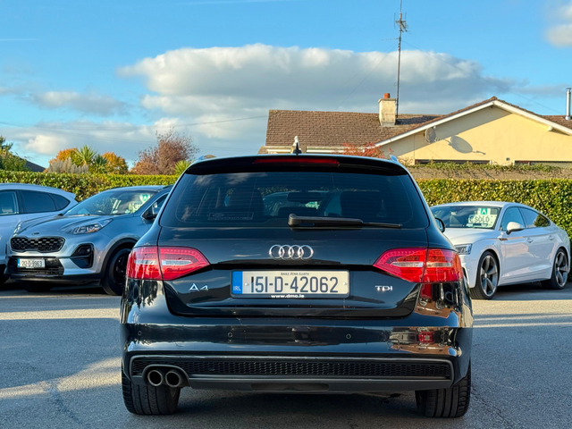*ONLY TEN MINUTES FROM BLANCHARDSTOWN SHOPPING CENTRE* 2015 Audi A4 2.0TDI S-Line Auto 150BHP in immaculate condition throughout with an excellent service record and huge spec to include: alloy wheels, parking sensors, leather upholstery, heated front seats, climate control, cruise control, sport seats, auto lights & wipers, bluetooth telephone system, media control unit, front centre armrest, abs, esp, isofix, multiple airbags etc. For further information, please contact Adam on 01 8017777 / 083 3983490