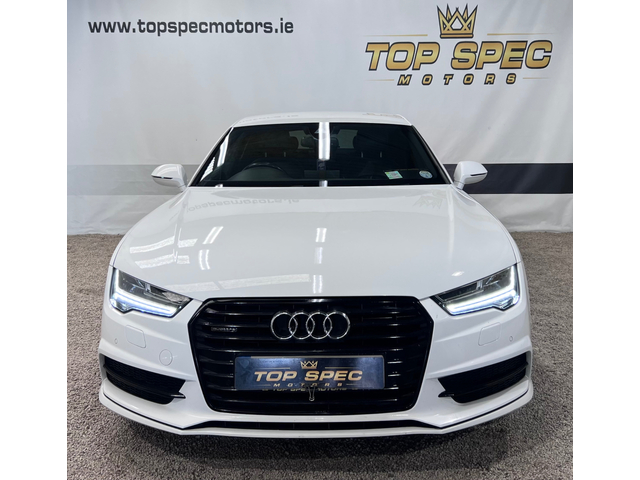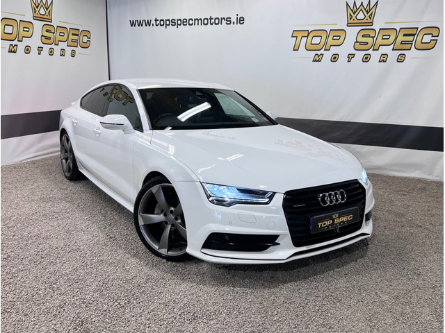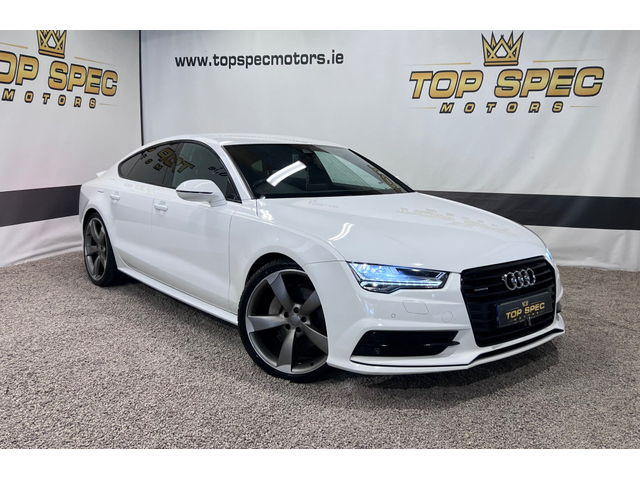 2016 162 Audi A7 3.0 TDI S-LINE QUATTRO 5DR BLACK EDITION 5" high resolution colour driver information display system Audi parking system plus with front and rear sensors Bluetooth interface Electric boot lid release navigation USB connection Full black Leather interior Heated front seats Matrix LED head lights S line Alloys Reverse camera LED signature front daytime running light S line air inlet design with inlay in matt aluminium Absolutely fully load top spec Very Economical! Fully valeted and ready to go! Cheap to tax run and insure Stunning car in every way Call sales on 0871925200 Price €22700 Strictly appointment only Now accepting cryptocurrency payments Check us out on Facebook for more info top spec motors and follow us on snap chat Finance & Warranty Available Top Spec Motors, Newmarket Co. Cork The prestige and performance specialists FULL 100% FINANCE CAN BE ARRANGED WITHIN 1 HOUR ARRIVE AND DRIVE THE SAME DAY Cork,s Used High Spec Car, Commercial and 4x4 Specialists Card Machine available on site Viewing 7 Days A Week and after 6pm to 11pm by appointment only Price includes NCT, Full service, professional Valet and Warranty *FREE NATIONWIDE DELIVERY ANYWHERE* From our forecourt to your front door for no extra cost Click the link below for mileage price and more info Www.topspecmotors.ie Central Locking, Electric Windows, Airbag, Rear Spoiler, Privacy Glass, Centre Armrest, Multi-function steering wheel, Satellite Navigation, Traction Control, Anti-Theft System, Parking Sensors, Bluetooth, EBD, Isofix, Active Safety Braking / City Brake / Collision Alert, Stop/Start Button, External Devices Connectivity, Cup holders, Remote boot/hatch/rear door release, Stability control