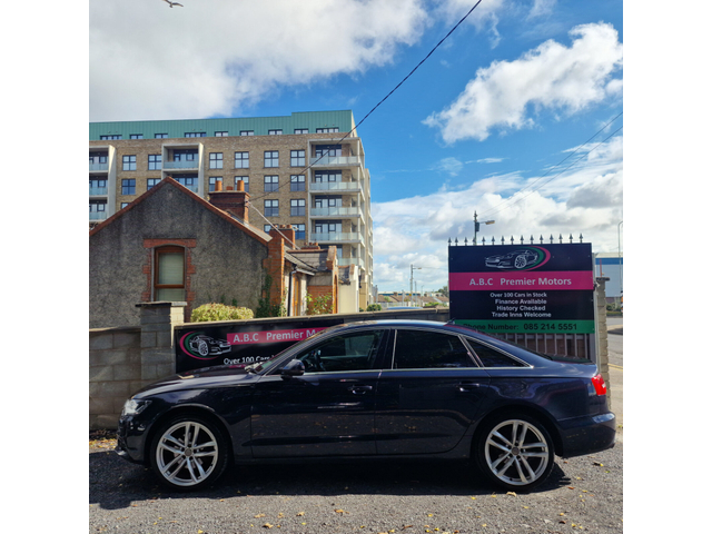 A.B.C Premier Motors 15 Old Naas Road Dublin 12 D12PX08 Audi A6 TDI Reg 2013 New Nct 07/26 Electric windows Electric mirrors Cruise control Central locking Multifunction steering wheel Air Conditioning Service done Allow wheels Good tyres Auto Lights Bluetooth Armrest Isofix Card Payment available Finance available * Trade ins welcome * * Delivery available * * Appointments available * * History Checked * Phone number 0852145551 Opening 6day a Week Monday to Friday 9am till 6pm Saturday 9 am Till 3Pm Air conditioning, Climate control, Dual zone climate control, Armrest, Keyless entry, Electrically adjustable seats, Electric side mirrors, Electric windows, Electric handbrake, Heated seats, Lumbar support, Multi-function steering wheel, Rain sensor, Spare tyre, Bluetooth, CD, 12v power outlet, Radio, USB connection (front), Cruise control, Hill hold assist, Front parking sensors, Rear parking sensors, Remote boot release, Start-stop system, Alloy wheels, Leather interior, Leather steering wheel, Tinted windows, Auto lights (dusk sensor), Daytime running lights, ABS, Anti collision system, Alarm system, Emergency brake assist, Central locking, Remote central locking, Driver-side airbag, Immobilizer, Isofix, Tyre pressure monitor, Passenger-side airbag, Side airbag, Stability control, Traction control