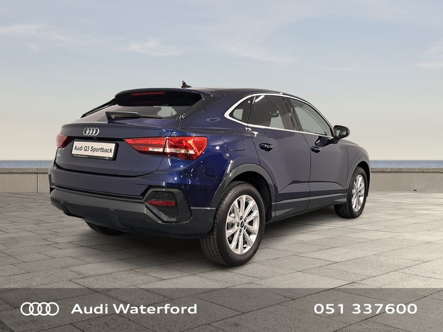 Audi Q3 Sportback 35TDI S-Tronic SE from €526 per month • Alarm • Reverse Camera • Audi Smartphone Interface • Audi Connect • Remote Central Locking • Reverse Camera • Rear Park Assist • LED Headlights • ISO Fix • Immobilizer • Front and Rear Park Assist • Auto Handbrake • Leather Interior • Heated Seats • Privacy Glass • Dual Climate control • Drivers Information System • Climate Control • Button Start-Stop • Armrest • Tinted Windows • Metallic Paint • Alloy Wheels
