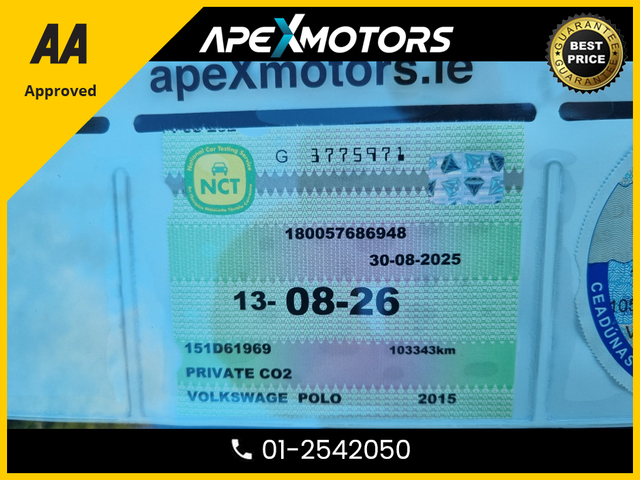 Welcome to APEXMOTORS.ie , an AA APPROVED INDEPENDENT DEALERSHIP We are one of Irelands Leading Providers of Quality Approved Used Cars and Light Commercials All Vehicles are fully Inspected by AA Approved Mechanics , All Vehicles are Cartell History Checked and Greenlight Verified * FINANCE ARRANGED * NEW NCT AUG-27 * LOW TAX OCT-25 * SPECIAL 40TH EDITION * 1.2 * AUTOMATIC (DSG) * AA APPROVED * 101 SAFETY CHECKLIST * IMMACULATE * COLOUR REVERSE CAMERA * TOP-SPEC 5DR HATCH * LOW LOW KMs * ADAPTIVE CRUISE * CRUISE CONTROL and SPEED LIMITER * 12-MONTH ROADSIDE ASSIST * STAMPED SERVICE HISTORY * ONE VERY CAREFUL OWNER * CARTELL HISTORY CHECKED * FULLY SERVICED * TRADE IN WELCOME * www.apexmotors.ie * CALL 01-2542050 or * WHATTSAPP 087-18-777-81 * WE ARE AN *AA* APPROVED USED CAR DEALERSHIP * ALL CARS GO THROUGH *AA APPROVED* 101 POINT SAFETY CHECKLIST * EXCESS 250 VEHICLES IN STOCK * ALL CARS IN FIRST CLASS CONDITION INSIDE & OUT * ALL VEHICLES ARE NCT TESTED, SERVICED, PROFESSIONALLY VALETED * COMPREHENSIVE AND EXTENDED WARRANTY AVAILABLE * CARTELL DOCUMENTED VERIFICATION * NATIONWIDE DELIVERY AVAILABLE * LOCATED -- EXIT-6 M50 (EIRCODE A86 YC84) * PLEASE CALL OUR SALES TEAM TODAY 01-2542050 or WHATTSAPP 087-1877781 * MON-FRI 2-6PM (Morning by appointment) and ALL DAY SAT 9-5PM * www.ApeXmotors.ie * Because we value your Business.. Central Locking, Electric Windows, Airbag, Fog Lamps, Privacy Glass, Multi-function steering wheel, Traction Control, Bluetooth, EBD, Isofix, Active Safety Braking / City Brake / Collision Alert, Stop/Start Button, External Devices Connectivity, Cup holders, Remote boot/hatch/rear door release, Stability control