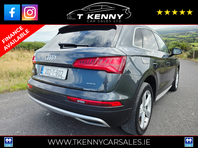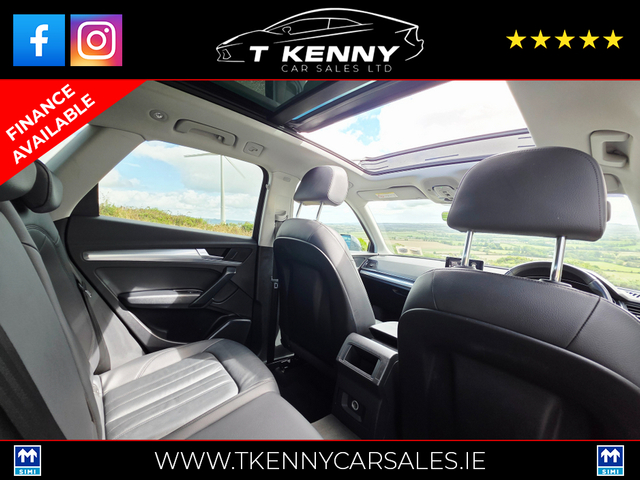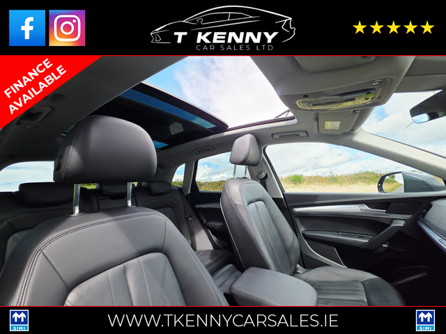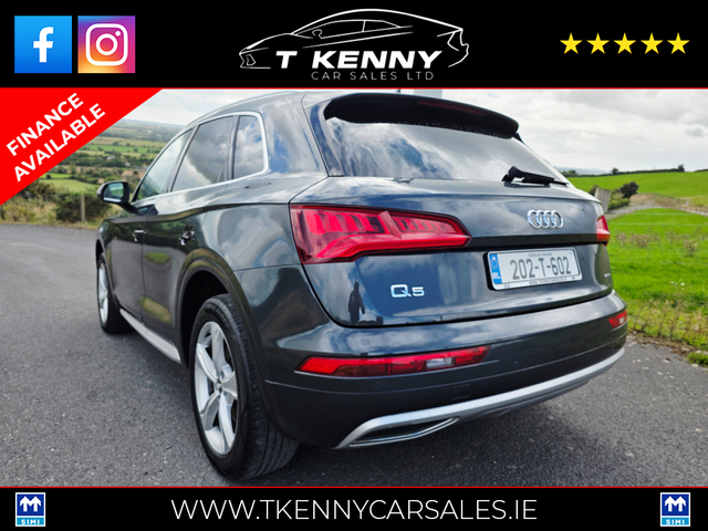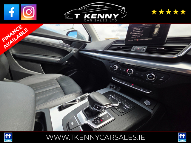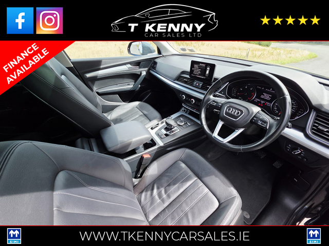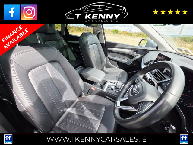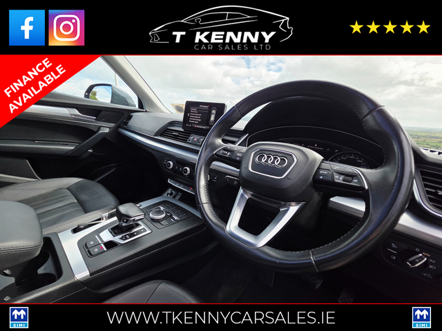 202 AUDI Q5 40TDI Q S-TRONIC AUTO €33,950 Just after landing into stock from a local lady owner, previously serviced by our own mechanic.. Finished off inside with black heated leather and Sunroof.. Price Includes a €2000 Scrappage/Trade in booster allowance. 0% Deposit €151 P/W or €655P/M 10% Deposit €139P/W or €601P/M 20% Deposit €126P/W or €542P/M Option of 3, 4, or 5 years on finance. Finance available on our website www.tkennycarsales.ie Or Call PJ on 0874116160 for finance options Trade in welcome €34,950, Call sales 087 792 4634 or 087 2575554 143,000km Deposit secures This vehicle is sold fully serviced, Vallated, tested and sold with warranty.. Suitable trade in welcome Finance available on our website www.tkennycarsales.ie We are an award winning dealership with Carsireland 2021 & 2023 Simi approved dealership Central Locking, Electric Windows, Airbag, Rear Spoiler, Centre Armrest, Multi-function steering wheel, Roof Rails, Satellite Navigation, Traction Control, Metallic Paint, Parking Sensors, Bluetooth, EBD, Isofix, Active Safety Braking / City Brake / Collision Alert, Stop/Start Button, External Devices Connectivity, Cup holders, Remote boot/hatch/rear door release, Stability control