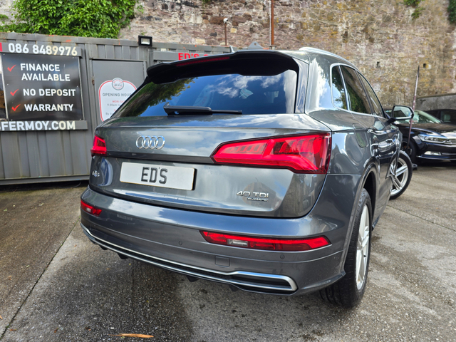 Audi Q5 S-Line 2.0 Tdi 40 , 190 Bhp S-Tronic Quattro 2019 (191) OFFERING NATIONWIDE 12 MONTHS WARRANTY PRICE €35,950 BOOK YOUR TEST DRIVE!!! Call Ed on 0868489976 New 2 Years NCT. R19 Alloy wheels. 156,000 KM. Fully Just Serviced ! Motorcheck Report done . WARRANTY 12 MONTHS with Mapfre. You Pick - Free Delivery anywhere in Ireland - or - Full Tank !!! View All Carswww.edcarsales.ie FINANCE AVAILABLE. 0868489976 More Info *2019 (191) *Automatic , S-Tronic. *Annual Tax 400 Euro. *Trade in welcome. *Driving Experience Control. *Front Seats Heated. *Digital Climate Control. *Road Sign Detection. *Cruise Control. *Full LED Headlights. *Paddle shift control. *Full leather Steering wheel. *Multi-function steering wheel. *Auto lights. *Headlight washers. *Welcome home lighting. *Corner lights. *LED day time running lights. *LED tail lights. *Electric windows. *Electric, heated, folding mirrors. *Front parking sensors. *Rear parking sensors. *Reversing Camera. *Auto start (Economy mode). *Auto hold, hill assist. *Dual climate control. *Air conditioning. *Sat Nav. *Usb/Aux/Bluetooth. *Alarm and Immobiliser. *ISO Fix (for baby seat). *Front center armrests *Front fog lights. Unit 1, Connolly Street. Fermoy. Co. Cork P61 Y162 Central Locking, Electric Windows, Airbag, Rear Spoiler, Privacy Glass, Centre Armrest, Multi-function steering wheel, Roof Rails, Satellite Navigation, Traction Control, Metallic Paint, Anti-Theft System, Parking Sensors, Bluetooth, EBD, Isofix, Active Safety Braking / City Brake / Collision Alert, Stop/Start Button, External Devices Connectivity, Cup holders, Remote boot/hatch/rear door release, Stability control