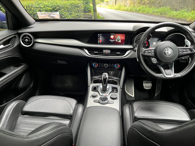 Frank Cussen Automotive would love you to experience Italian flair, exhilarating performance, and cutting-edge technology with the Alfa Romeo Stelvio 2.2JTD 210 Veloce Q4 This stunning SUV blends dynamic design with raw power, making every journey as thrilling as it is comfortable. Under the bonnet, the 2.1 Diesel produces an impressive 276 bhp and 470 Nm of torque, propelling the Stelvio from 0-60 mph in just 6.6 seconds. The smooth 8-speed automatic gearbox, combined with Alfas DNA driving modes and advanced 4-wheel drive system, ensures an agile and composed ride no matter the conditions. Specification to include Full Momo Leather Adaptive Cruise Control Climate Control Electrically Adjustable Seats With Memory function Heated Seats Hill Assist Info Centre iPod Connection Keyless Drive Keyless Entry Multi-Function Steering-Wheel USB Q4 Wheel Drive System Drive Select Info centre Parking Camera Front & Rear Parking Sensors Remote Central Locking 20' Petal Alloys Privacy Glass Power Tailgate Full Alfa Romeo Service History and will be serviced before delivery. 1 Owner New NCT to be applied Warranty 12 Months www.frankcussen.ie Central Locking, Electric Windows, Airbag, Cruise Control, Fog Lamps, Rear Spoiler, Privacy Glass, Centre Armrest, Multi-function steering wheel, Satellite Navigation, Traction Control, Anti-Theft System, Parking Sensors, Bluetooth, EBD, Isofix, Apple Car Play, Android Auto, Active Safety Braking / City Brake / Collision Alert, Stop/Start Button, External Devices Connectivity, Cup holders, Remote boot/hatch/rear door release, Stability control