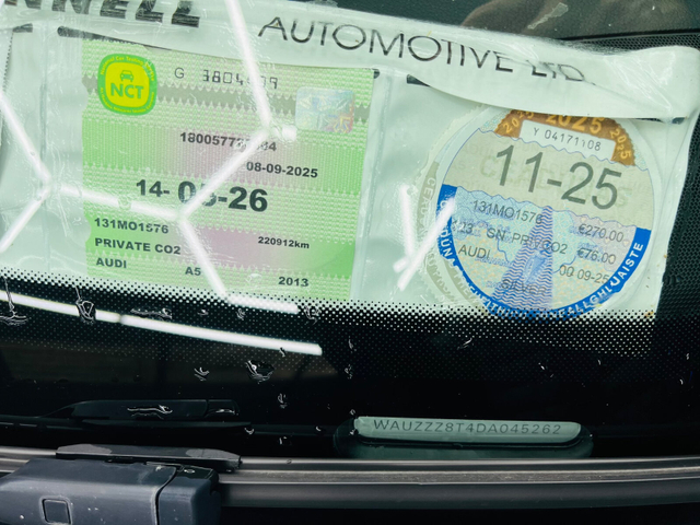 Audi A5 2.0 diesel Automatic New Nct 005/26 Tax 30/11/25 Parking sensors 2 doors 20” alloys Stunning BY APPOINTMENT ONLY More info call 0877016546 Air conditioning, Climate control, Armrest, Keyless entry, Electric side mirrors, Electric windows, Electric handbrake, Multi-function steering wheel, Rain sensor, Spare tyre, Bluetooth, CD, 12v power outlet, Radio, Cruise control, Rear parking sensors, Remote boot release, Start-stop system, Alloy wheels, Leather interior, Leather steering wheel, Tinted windows, Auto lights (dusk sensor), Bi-xenon headlights, Daytime running lights, ABS, Anti collision system, Emergency brake assist, Central locking, Remote central locking, Driver-side airbag, Immobilizer, Isofix, Tyre pressure monitor, Passenger-side airbag, Side airbag, Stability control, Traction control