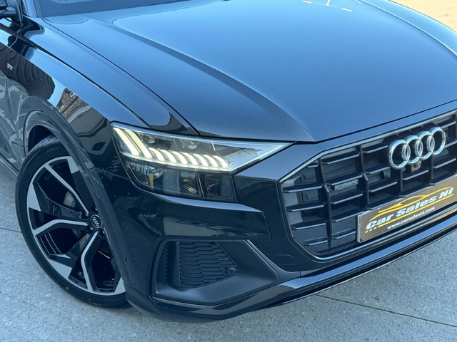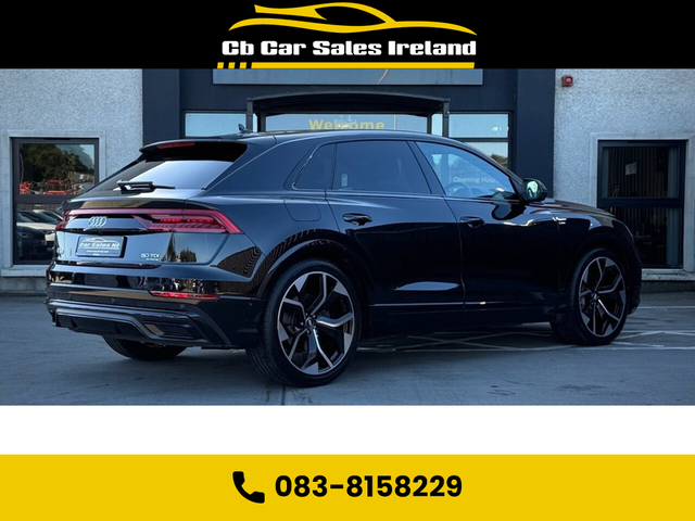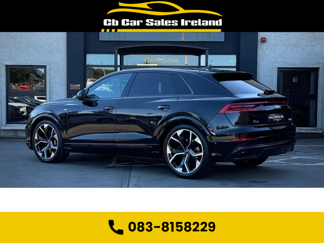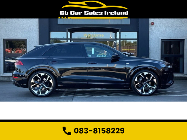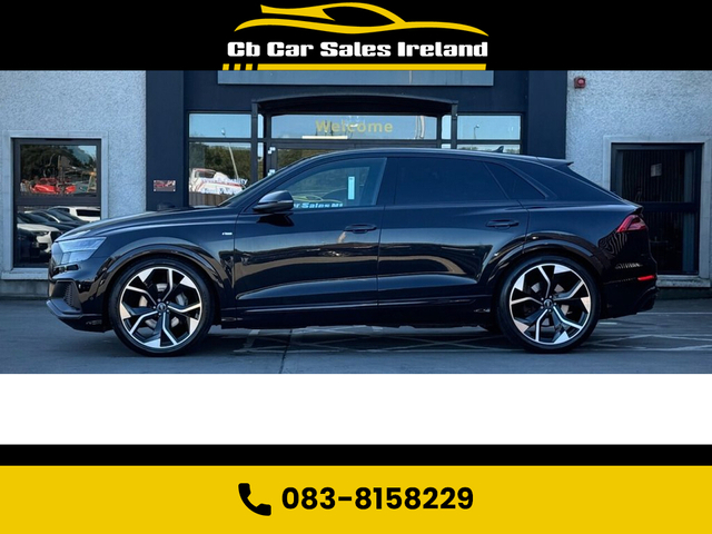 2023 AUDI Q8 S LINE QUATTRO 50 TDI V6 282 BHP 1 Owner from new, Covered 28k miles, Finished in Black, Key Features include 23'' Upgraded alloy wheels (1,500 Optional extra) Adaptive Air Suspension Rear privacy glass Black Edition styling Front and Rear Parking sensors 360* Parking Camera Full Leather S Line interior Leather Multifunctional steering wheel Paddle shift Heated front seats Electrically adjustable front seats Dual Climate control Virtual cockpit DAB Radio / Bluetooth / Sat Nav Bang and Olufsen Sound system Comfort and Sound Pack Electronic Tailgate AUDI Drive Mode Select ISOFIX Child seat points And so much more.. Call today to arrange a test drive Tailored finance packages available to suit your needs, Comprehensive warranty on all cars Trade ins welcome Delivery to North and South of Ireland if required MOT Expires 9 March 2027 Total price to ROI €99,900 Central Locking, Electric Windows, Airbag, Rear Spoiler, Privacy Glass, Centre Armrest, Multi-function steering wheel, Satellite Navigation, Traction Control, Metallic Paint, Anti-Theft System, Parking Sensors, Bluetooth, Isofix, Active Safety Braking / City Brake / Collision Alert, Stop/Start Button, External Devices Connectivity, Cup holders, Remote boot/hatch/rear door release, Stability control