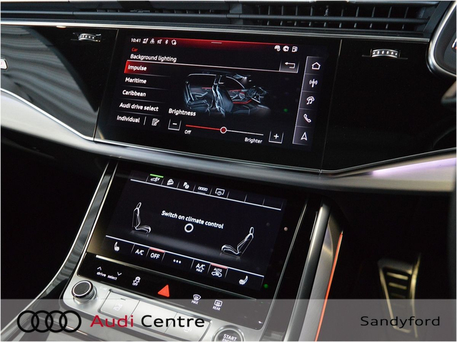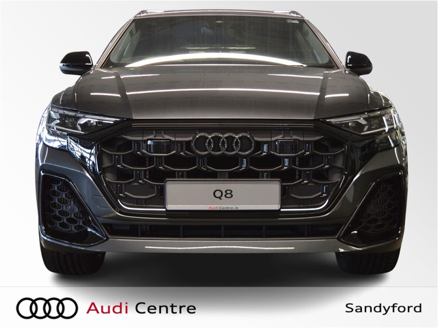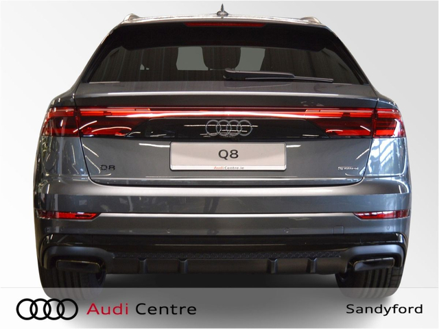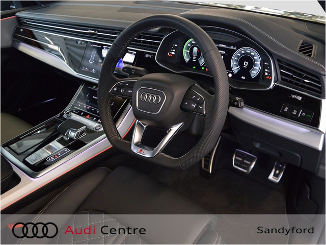 Audi Q8 60 TFSI-e Quattro Competition 490PS Panoramic Sunroof • Audi Music Interface • Bang & Olufsen • Bluetooth Interface • Audi Drive Select • Audi Stop/Start • Adaptive Air Suspension • Auto Handbrake • Cruise Control • Engine Recuperation • Quattro Four Wheel Drive • Black Styling Pack • Contrasting Roof Arch • Metallic Paint • S-Line Body Styling • Sunroof • Armrest • Button Start-Stop • Door Sills with Aluminium Inlays • Electric Mirrors Heated Memory • Electric Windows • Front/Rear Floor Mats • Illuminated Centre Console Storage • LED Interior Light Pack • Privacy Glass • Rake/Reach Adjustable Steering Column • Split Fold Rear Seats • Upholstery and Seats • Headlining in Black Cloth • Heated Seats • Lumbar Support • Valcona Leather Upholstery • ABS • Alarm • Anti Theft System • Audi Matrix LED Headlights • Child Locks • Daytime Running Lights • Electronic Stability Programme (ESP) • High Beam Assist • Hill Hold Assist • Immobilizer • ISO Fix Front Passenger and Rear Seat Preparation • Light and Rain Sensor • Multiple Airbags • Power Boot Opening and Closing • Reverse Camera • Voice control • Speed Limiter • Sport Suspension • 3 climatic zones • Front Sport Seats Plus • Sport leather steering wheel, flat bottom with multifunction and shift paddles • Stainless steel pedals and footrest • Lane departure warning • Park assist with parking system plus • 22" Audi Sport Wheels • LED rear lights with dynamic turn signal • Audi Connect • Audi Phone Box with wireless charging • Audi Smartphone Interface • Audi Virtual Cockpit • Electric Front seats with memory • Keyless Go • Pre sense city
