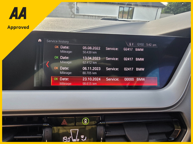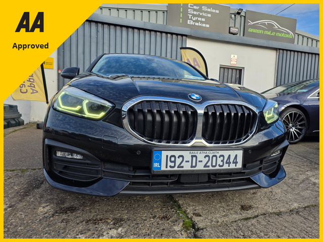 * 2019 BMW 116D SE MODEL * 1.5 DIESEL WITH AUTOMATIC GEARBOX * COMES IN NICE METALLIC BLACK COLOUR * 17 INCH ALLOY WHEELS (4 GOOD TYRES) * BLACK LEATHER INTERIOR * HEATED SEATS * PARKING SENSORS (FRONT AND REAR) * CRUISE CONTROL * AIR CONDITIONER * SAT NAVIGATION * PRIVACY GLASS * MULTI-FUNCTION STEERING WHEEL * BLUETOOTH AND USB CONNECTIONS * IRISH CAR FROM NEW * ONLY ONE PREVIOUS OWNER * FULL SERVICE HISTORY * NEW NCT TEST TILL 09/27 * LOW TAX BRACKET € 200 PER ANNUM * 74883 MILES / 120512 KM * CAR LOOKS AND DRIVES VERY WELL * ANY INSPECTION WELCOME * TO APPLY FOR FINANCE PLEASE VISIT OUR WEBSITE WWW.GREENMILEMOTORS.IE * We are proud to be an AA approved and 5 star rated dealer. * All our cars have been through a 101-point AA approved inspection and comes with 12 months free AA membership, roadside assistance and breakdown. * This car has been checked by motor check.ie (full history report from new included HPI clear) to ensure peace of mind for the customer and to in still confidence when purchasing a pre-owned vehicle * All our cars come serviced, health checked and valeted * 3 months warranty included (12 months warranty available) * Trade-ins welcome * For more information or arrange viewings please call 0857444451 * Due to a high turnover in stock, we recommend that you contact our sales team to make sure the car is still available and to make an appointment