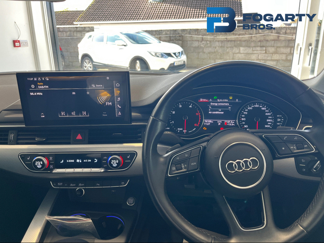 2022 Audi A4 Automatic 2.0 Ltr Diesel with only 76k kms. NCT until Aug/26 and dealer warranty. Immaculate Audi A4 with great spec. Automatic, full leather interior, Parking sensors. Test Drive and viewing highly recommended. Great finance options available with direct applications available through our website, over the phone or in our office. Call 024-95317 or Cian 087-9485023 / Dominic 087-2710860 for further details or to arrange a viewing. www.FOGARTYBROS.ie Central Locking, Electric Windows, Airbag, Centre Armrest, Multi-function steering wheel, Traction Control, Metallic Paint, Parking Sensors, Bluetooth, EBD, Isofix, Active Safety Braking / City Brake / Collision Alert, Stop/Start Button, External Devices Connectivity, Cup holders, Remote boot/hatch/rear door release, Stability control