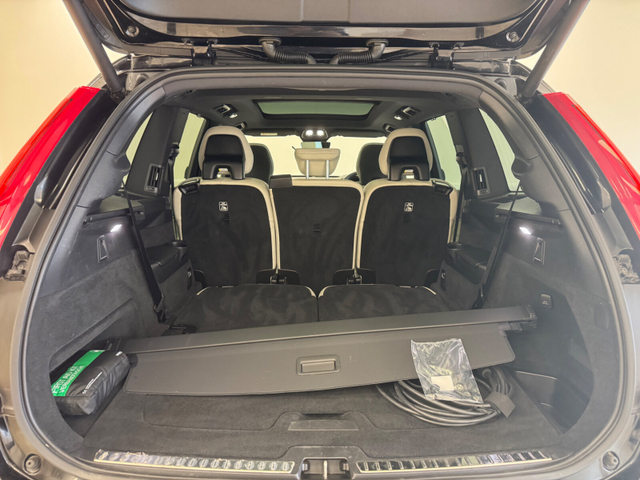 Volvo xc90 black Air conditioning, Climate control, Dual zone climate control, Multi zone climate control, Armrest, Keyless entry, Electrically adjustable seats, Heated windshield, Electric boot, Electric side mirrors, Electric windows, Electric handbrake, Heated seats, Heated steering wheel, Lumbar support, Multi-function steering wheel, Rain sensor, Split rear seats, Gear shift paddles, Android Auto, Apple CarPlay, Bluetooth, MP3 compatible, 12v power outlet, Radio, Touch screen display, USB connection (front), Wifi, Adaptive cruise control, Cruise control, Hill hold assist, Navigation system, Parking camera, Front parking sensors, Rear parking sensors, Remote boot release, Roof rails, Speed limiter, Start-stop system, Traffic sign recognition, Voice control, Parking assistance, Digital instrument panel, Alloy wheels, Electric sunroof, Leather interior, Leather steering wheel, Panoramic sunroof, Spoiler, Sunroof, Adaptive headlights, Ambient lighting, Auto lights (dusk sensor), Daytime running lights, High beam assist, LED headlights, ABS, Lane change assist, Anti collision system, Alarm system, Emergency brake assist, Central locking, Driver-side airbag, Immobilizer, Isofix, Lane departure warning, Tyre pressure monitor, Passenger-side airbag, Seat belt warning, Side airbag, Stability control, Traction control, Emergency tyre repair kit, 4WD