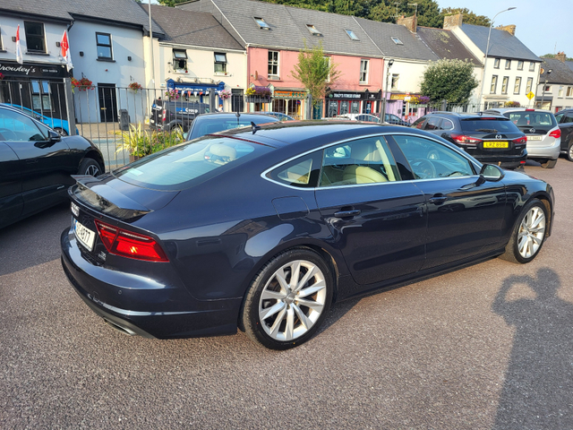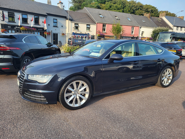 This is not to be confused with your normal 2015 Audi A7. Among the set this car apart are - One private owner from new. - FULL Audi service history - all receipts present, showing that no expense was spared in maintaining the car. - 272 BHP engine (compared to the more common 218 BHP). - Many additional features compared to the standard spec. This A7, which is the 2015 facelift model, is in superb condition and looks amazing in the Moonlight Blue Metallic paintwork. Some of its noteworthy features include... Adaptive Air Suspension (€3,000 option) Tilt & Slide Sunroof (€1,500 option) Quattro (AWD) BOSE Surround Sound (€1,500 option) Atlas Beige Valcona Leather Upholstery Power Seats With Memory Feature (Both Front Seats) More detailed features are listed below. The car comes with NCT to 2027 and will be sold with our dealer warranty. In addition to the service records, we have the owner's handbooks, two keys, and a clear vehicle history report. We can send high-resolution photos if requested. Please call or email with any questions. About Us Southern Motors is headed by Donal O'Sullivan, who has more than 30 years experience of sourcing vehicles in the UK and Ireland, with a focus on high quality cars with complete service records and a clear and verifiable history. Finance available - please call us or see our website for details and application form. Trade-ins accepted. Inspections and test drives welcomed and encouraged. NATIONWIDE DELIVERY to your front door is possible. Full Service History, 3 Month Warranty, Central Locking, CD Player, Electric Windows, Airbag, Alloy Wheels, Cruise Control, Electric Mirrors, Electric Seats, Fog Lamps, Immobiliser, Rear Spoiler, Full Leather, Automatic Wipers, Automatic Lights, Centre Armrest, Luggage Cover, Multi-function steering wheel, Satellite Navigation, Traction Control, Metallic Paint, Anti-Theft System, Parking Sensors, Bluetooth, Brand New Tyres, Remote Central Locking, EBD, Electronic handbrake, Folding rear seats, Isofix, Hill holder, History Checked, Finance Checked, Heated Front Seats, Reversing Camera, Front Parking Sensors, Active Safety Braking / City Brake / Collision Alert, Stop/Start Button, Touch Screen Media Control, Drive Mode Selector, Dual Zone Climate Control, Daytime Running Lights, 2 Keys, Main Dealer Service History, External Devices Connectivity, Cup holders, Remote boot/hatch/rear door release, Stability control