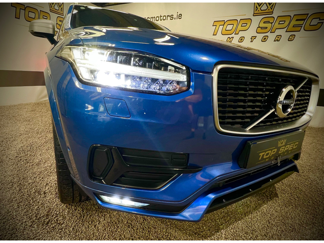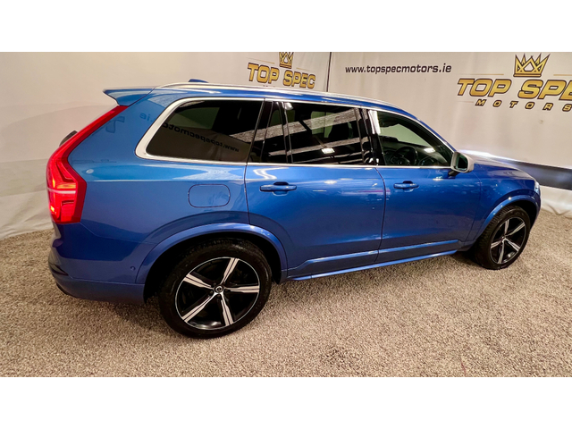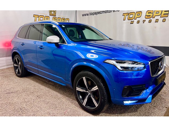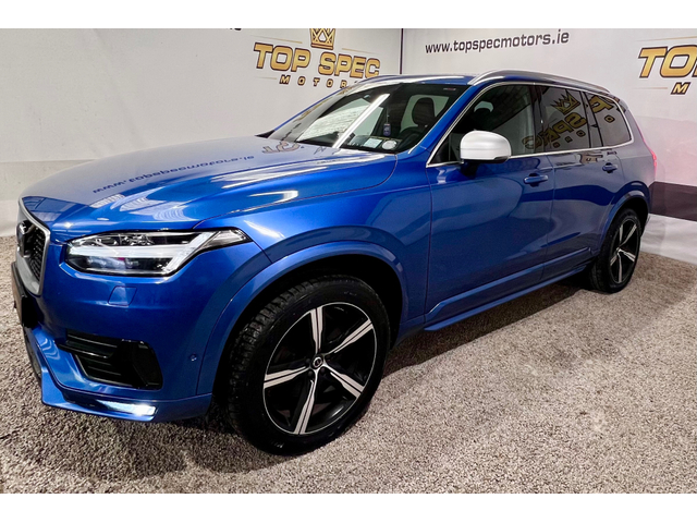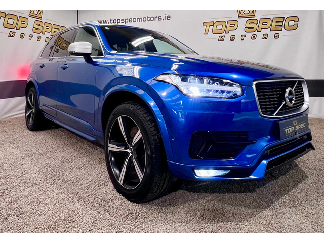172 Volvo XC90 AWD R-Design GT AUTO 7 Seater Absolutely FULLY LOADED with every factory extra Metallic blue 2.0 diesel Paddle Shift 7 seats Black R-Design heated leather interior Dual action Ambience Package Heated steering wheel Memory seating Reversing camera Factory Upgraded gt alloy wheels Factory Privacy glass Electric folding hitch Front Xenon fog lamps Keyless entry (2 keys) Virtual display Cruise control Electric,lumbar & memory seats - Apple carplay Satellite navigation Assisted tailgate with soft close Electrically deployable tow bar Extended wheel arches Maxtrix led headlights Touchscreen Absolutely fully loaded Top spec Stunning Jeep in every way Call sales on 0871925200 for price and more info Top Spec Motors, Newmarket Co. Cork The prestige and performance specialists Click the link below for more info Www.topspecmotors.ie Cork,s Used High Spec Car, Commercial Motorhome and 4x4 Specialists Card Machine available on site Viewing 7 Days A Week and after 6pm to 11pm by appointment only *FREE NATIONWIDE DELIVERY ANYWHERE* From our forecourt to your front door for no extra cost Www.topspecmotors.ie Central Locking, Electric Windows, Airbag, Fog Lamps, Rear Spoiler, Privacy Glass, Centre Armrest, Multi-function steering wheel, Roof Rails, Satellite Navigation, Traction Control, Metallic Paint, Anti-Theft System, Parking Sensors, Bluetooth, EBD, Isofix, Active Safety Braking / City Brake / Collision Alert, Stop/Start Button, Touch Screen Media Control, External Devices Connectivity, Cup holders, Remote boot/hatch/rear door release, Stability control