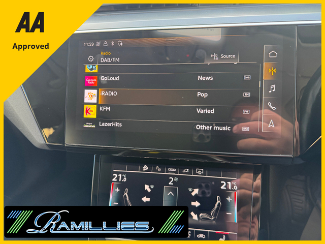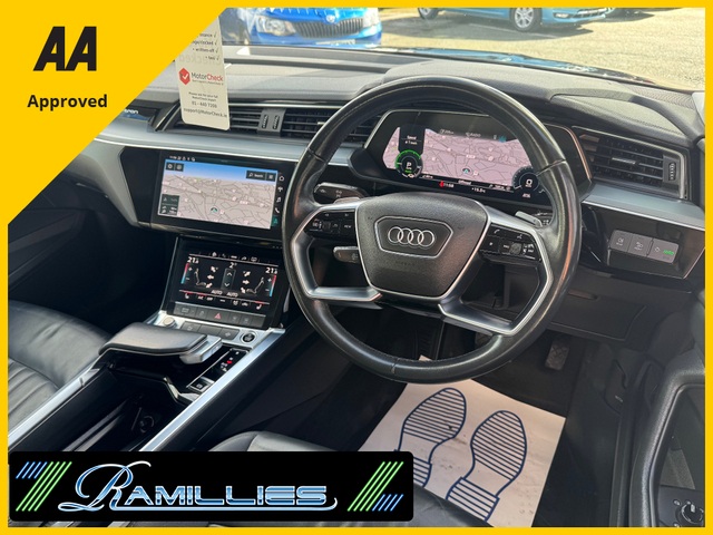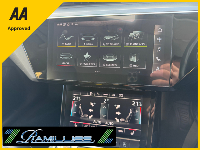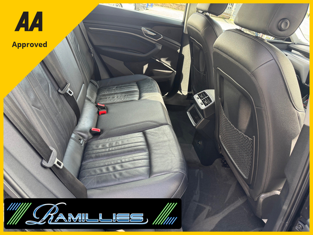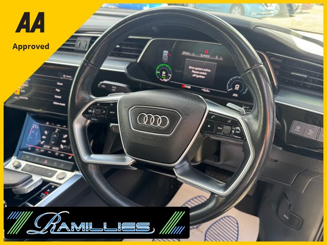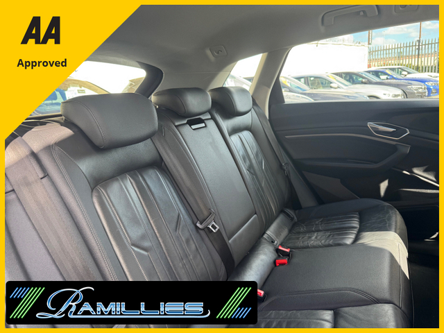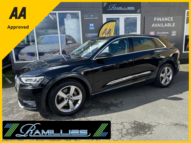 Stunning example of a 2020 Audi E-Tron 71KW 50 Quattro Technik finished in eye catching Mythos Black Vehicle Features * Full Digital Cockpit * Audi Sound System * Lane Departure * Full Black Valcona Leather interior * Electric Memory Seats * L.E.D Headlights * Multi-function Steering wheel * 3D Sat NAV * Digital Climate Control with A/C * Rear Parking Sensors * Colour Camera with Chevron Assist * Heated & Dimming Mirrors * 20" Audi 5 Arm Alloy Wheels * Electric Tailgate * 2 Chargers Sale Features * S.I.M.I. Dealer * AA Approved Dealer * Full Vehicle Motorcheck report * 12 Months Nationwide Mechanical Warranty * 12 Months AA Breakdown Assist * 12 Months AA Membership * Free Home Delivery (T&C's) * Online Finance Available * Approved Credit Intermediary for all major finance houses Full Service History, 12 Month Warranty, Trade in accepted, Air Conditioning, Central Locking, Immaculate condition, Electric Windows, Airbag, Alarm, Alloy Wheels, Cruise Control, Electric Mirrors, Electric Seats, Immobiliser, Rear Spoiler, Full Leather, Heated Seats, Centre Armrest, Luggage Cover, Multi-function steering wheel, Satellite Navigation, Traction Control, Metallic Paint, Xenon Lights, Anti-Theft System, Parking Sensors, Bluetooth, Remote Central Locking, EBD, Electronic handbrake, Folding rear seats, Isofix, Hill holder, Roadside assistance, History Checked, Finance Checked, Heated Front Seats, Reversing Camera, Lane Departure Warning, Wireless Smartphone Control, Electro Chrome Rear View Mirror, Active Safety Braking / City Brake / Collision Alert, Drive Mode Selector, 2 Keys, Main Dealer Service History, External Devices Connectivity, Cup holders, Remote boot/hatch/rear door release, Stability control