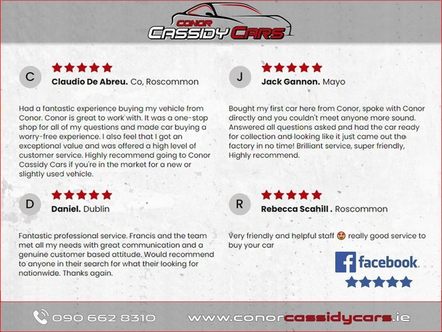| Contact info: | Conor Cassidy Cars Lanesborough Road Roscommon Town County Roscommon Ph: 090-6628310 |