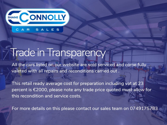 stock 79 €407 per MONTH based on €2,189 deposit or trade in. *** VRT INCLUDED *** *** NATIONWIDE WARRANTY *** *** DELIVERY AVAILABLE AT EXTRA COST *** parking sensors, reversing camera, cruise control, app connect, Bluetooth, media connection, Air Conditioning, Central Locking, Electric Windows, multi function steering wheel, fog lights, Alloy Wheels, Electric Mirrors, Power Steering, Multiple Air Bags, alloy wheels. Central Locking, Electric Windows, Airbag, Fog Lamps, Centre Armrest, Multi-function steering wheel, Roof Rails, Traction Control, Metallic Paint, Parking Sensors, Bluetooth, EBD, Isofix, Active Safety Braking / City Brake / Collision Alert, Stop/Start Button, External Devices Connectivity, Cup holders, Remote boot/hatch/rear door release, Stability control