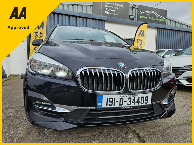 * 2019 BMW 218D LUXURY MODEL 7 SEATER * 2.0 DIESEL WITH AUTOMATIC GEARBOX * COMES IN NICE METALLIC BLACK COLOUR * 17 INCH ALLOY WHEELS (4 NEW TYRES) * CREAM LEATHER INTERIOR * PARKING SENSORS * CRUISE CONTROL * SAT NAVIGATION * ELECTRIC TAIL GATE * DUAL CLIMATE CONTROL WITH A/C * MULTI-FUNCTION STEERING WHEEL * BLUETOOTH AND USB CONNECTIONS * IRISH CAR FROM NEW * SERVICE HISTORY * NCT TEST TILL 04/27 * LOW TAX BRACKET € 270 PER ANNUM * 44901 MILES / 72261 KM * 2 ORIGINAL KEYS * CAR LOOKS AND DRIVES VERY WELL WITH PLENTY OF SPACE * ANY INSPECTION WELCOME * TO APPLY FOR FINANCE PLEASE VISIT OUR WEBSITE WWW.GREENMILEMOTORS.IE * We are proud to be an AA approved and 5 star rated dealer. * All our cars have been through a 101-point AA approved inspection and comes with 12 months free AA membership, roadside assistance and breakdown. * This car has been checked by motor check.ie (full history report from new included HPI clear) to ensure peace of mind for the customer and to in still confidence when purchasing a pre-owned vehicle * All our cars come serviced, health checked and valeted * 3 months warranty included (12 months warranty available) * Trade-ins welcome * For more information or arrange viewings please call 0857444451 * Due to a high turnover in stock, we recommend that you contact our sales team to make sure the car is still available and to make an appointment