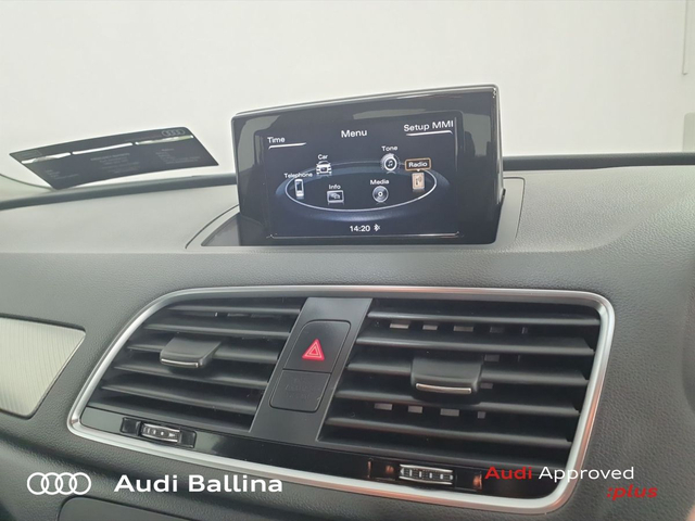Audi Q3 Q3 2.0TDI SE AUTO With Comfort Pack • Bluetooth Interface • Mobile Phone Preparation-Bluetooth • Cruise Control • Alloy Wheels • Body Coloured Door Mirrors • Air Conditioning • Armrest • 3 Spoke Leather Multifunction S-Line Steering Wheel • Leather Interior • 12V Power Points in Front + Rear Centre Consoles • USB • Front and Rear Park Sensors • Speed Limiter • USB charging ports