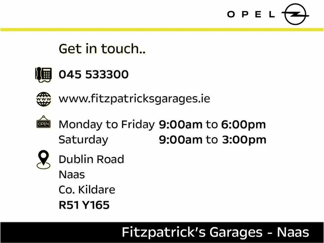| Contact info: | Fitzpatricks Garage Opel Naas Naas Industrial Estate Dublin Road Naas County Kildare Ph: 086-2641562 |
