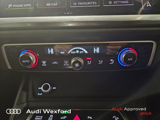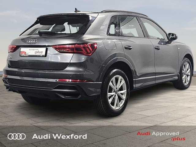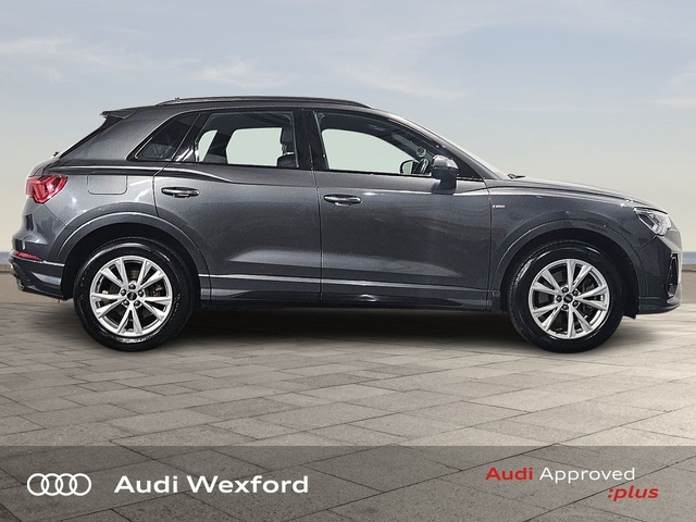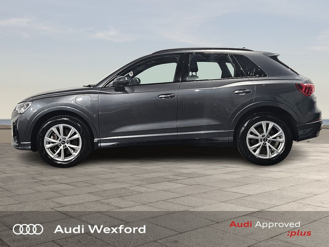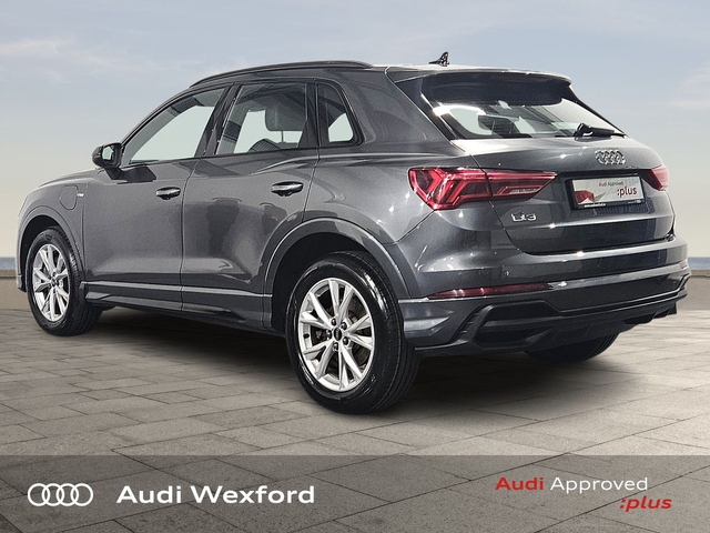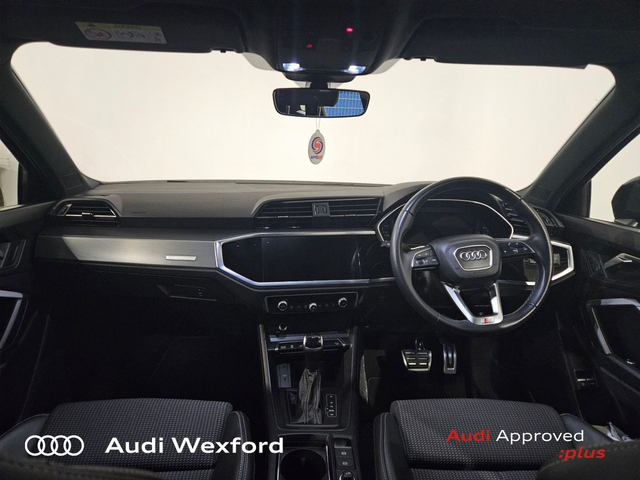 Audi Q3 45 TFSI E S Tronic S line Black Edition €389 p/m • Bluetooth Interface • Audi Drive Select • Audi Stop/Start • Alloy Wheels • Black Styling Pack • Air Conditioning • Armrest • Climate Control • Immobilizer • ISO Fix • USB • Front and Rear Park Sensors • Voice control • Audi Connect