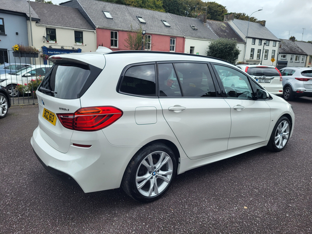 Beautiful 2016 BMW 218D M Sport Gran Tourer Automatic 7-seater with 118k miles (190k km) in fabulous condition. The car will be sold on Irish plates (VRT included in the price), registered to the county of the new owner. It will come with a new 2-year NCT, as well as a 6-month warranty, extendable to 12 or 24 months. The car looks great with the M Sport styling features and drives beautifully. The Mineral White metallic paintwork is in superb condition, as are the 18-inch BMW alloys. Inside, the Dakota black leather seats add comfort and style, while the car has a fabulous specification (some details are listed below and we can send the full spec on request). We acquired this BMW directly from its previous lady owner in Northern Ireland, who owned it for the past six years (with one prior keeper). No expense has been spared in maintaining it, with records confirming comprehensive servicing since new. The car has just been serviced again, ensuring that everything is in top order for the next owner. In addition to the service records, we have the owner's handbooks, two keys, and a clear vehicle history report. We will be happy to send high-res photos if requested. Please call or email with any questions. About Us Southern Motors is headed by Donal O'Sullivan, who has more than 30 years experience in the industry, with a focus on high quality cars with complete service records and a clear and verifiable history. Trade-ins accepted. Inspections and test drives welcomed and encouraged. Finance available - please call us or see our website for details and application form. NATIONWIDE DELIVERY to your front door is possible. Full Service History, 6 Month Warranty, Central Locking, CD Player, Immaculate condition, Electric Windows, Airbag, Alloy Wheels, Cruise Control, Electric Mirrors, Fog Lamps, Immobiliser, Full Leather, Privacy Glass, Automatic Wipers, Automatic Lights, Centre Armrest, Luggage Cover, Multi-function steering wheel, Roof Rails, Satellite Navigation, Traction Control, Metallic Paint, Anti-Theft System, Parking Sensors, Bluetooth, Remote Central Locking, EBD, Electronic handbrake, Folding rear seats, Seat back tables, Isofix, Hill holder, History Checked, Finance Checked, Keyless Entry, Heated Front Seats, Reversing Camera, Motorised Tailgate, Front Parking Sensors, Active Safety Braking / City Brake / Collision Alert, Stop/Start Button, Drive Mode Selector, Dual Zone Climate Control, Daytime Running Lights, 2 Keys, External Devices Connectivity, Cup holders, Remote boot/hatch/rear door release, Stability control