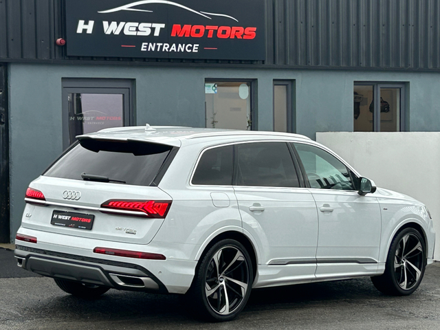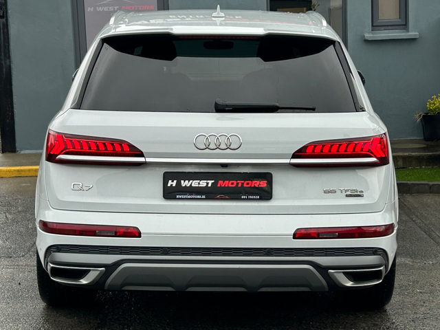 Audi Q7 S Line 55 TFSI e Quattro Straight Sale Price €51,955 Trade in Price €52,955 Available now at H West Motors Experience luxury, performance, and efficiency combined in this stunning 2020 Audi Q7 S Line 55 TFSI e Quattro. This plug-in hybrid SUV delivers an exceptional driving experience with its 3.0L petrol-hybrid engine producing 376 BHP, paired with Audis renowned Quattro all-wheel drive system and smooth automatic transmission. Finished in elegant White, this one-owner Q7 offers premium comfort and practicality with 5 seats, 5 doors, and an estate body styleperfect for both family and executive use. Key Features S Line exterior styling with sporty detailing Plug-in hybrid efficiency (CO 61 g/km, approx. 1 MPG combined) Quattro all-wheel drive for superior traction 3.0L hybrid engine producing 376 BHP Smooth automatic transmission Premium white exterior 47,500 miles / 76,444 kms 6 Month Warranty, Central Locking, Electric Windows, Airbag, Rear Spoiler, Privacy Glass, Centre Armrest, Multi-function steering wheel, Roof Rails, Satellite Navigation, Traction Control, Metallic Paint, Anti-Theft System, Parking Sensors, Bluetooth, EBD, Isofix, Active Safety Braking / City Brake / Collision Alert, Stop/Start Button, External Devices Connectivity, Cup holders, Remote boot/hatch/rear door release, Stability control