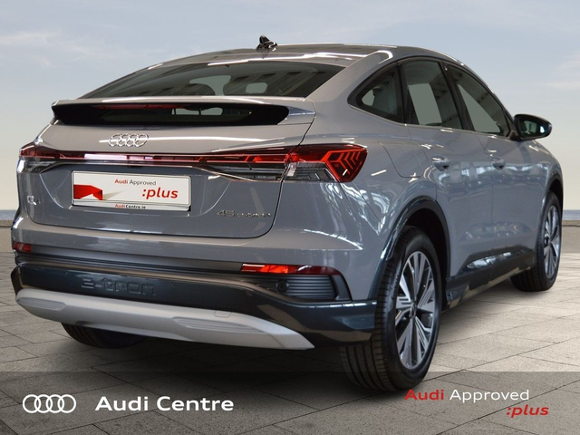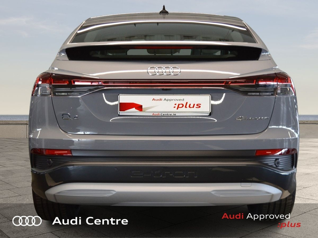 Audi Q4 e-tron Sportback 45 SPORT Sunroof Price new was €75,186 • Audi Music Interface • Audi Drive Select • Audi Stop/Start • Adaptive Cruise Control • Auto Handbrake • 19"Alloys • High Gloss Pack • Ambient Lighting • Armrest • Automatic Air Conditioning • Button Start-Stop • Door Sills with Aluminium Inlays • Electric Mirrors Heated Memory • Electric Windows • Front/Rear Floor Mats • Interior Lighting Pack • Rake/Reach Adjustable Steering Column • Heated Seats • Leather Interior • Lumbar Support • ABS • Alarm • Child Locks • Daytime Running Lights • Hill Hold Assist • Immobilizer • ISO Fix • LED Headlights • Light and Rain Sensor • Power Boot Opening and Closing • Reverse Camera • Voice control • Speed Limiter • SONOS 3D Premium Sound System • Twin-spoke leather steering wheel with multifunction and shift paddles • Assist package Drive and Park • Assist package Park • Front emergency brake assist • Lane departure warning with emergency assist • Swerve assist and turn assist • LED rear lights with dynamic turn signal • Panoramic Glass Roof • Audi Connect • Electric Front seats with memory • Pre sense city