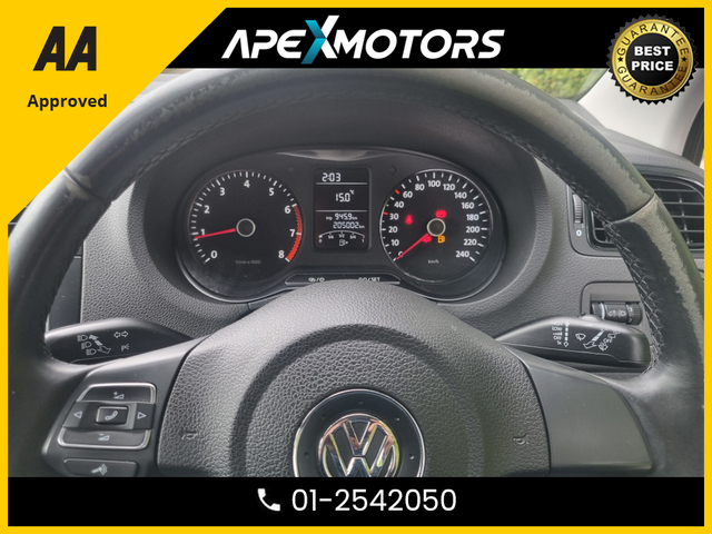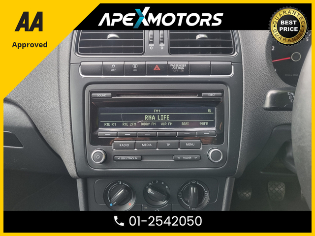 Welcome to APEXMOTORS.ie , an AA APPROVED INDEPENDENT DEALERSHIP, with all the Features you expect from the Franchise Dealerships We are one of Irelands Leading Providers of Quality Approved Used Cars and Light Commercials, All Vehicles are fully Inspected by AA Approved Mechanics , Come Fully Serviced and Professionally Valeted, All Vehicles are Cartell History Checked and Greenlight Verified, and Sold with Warranty, We consider ourselves best priced in the Market Nationwide, Full Finance options are also available, we work with all provider to offer you the Best solutions for your needs * FINANCE ARRANGED * TRENDLINE 1.2 60HP MANUAL 5SPEED 5DR * NEW NCT FEB-27 * AA APPROVED * 101 SAFETY CHECKLIST * 12-MONTH ROADSIDE ASSIST * IMMACULATE * TOP-SPEC 5DR HATCH * LOW TAX * SERVICE HISTORY * VERY CAREFUL LADY OWNER * CARTELL HISTORY CHECKED * FULLY SERVICED * TRADE IN WELCOME * www.apexmotors.ie * CALL 01-2542050 or * WHATTSAPP 087-18-777-81 * WE ARE AN *AA* APPROVED USED CAR DEALERSHIP * ALL CARS GO THROUGH *AA APPROVED* 101 POINT SAFETY CHECKLIST * EXCESS 250 VEHICLES IN STOCK * ALL CARS IN FIRST CLASS CONDITION INSIDE & OUT * ALL VEHICLES ARE NCT TESTED, SERVICED, PROFESSIONALLY VALETED * COMPREHENSIVE AND EXTENDED WARRANTY AVAILABLE * CARTELL DOCUMENTED VERIFICATION * NATIONWIDE DELIVERY AVAILABLE * LOCATED -- EXIT-6 M50 (EIRCODE A86 YC84) * PLEASE CALL OUR SALES TEAM TODAY 01-2542050 or WHATTSAPP 087-1877781 * MON-FRI 2-6PM (Morning by appointment) and ALL DAY SAT 9-5PM * www.ApeXmotors.ie * Because we value your Business.. Warning buzzer and light for front seatbelts unfastened Service interval indicator PAS - speed related Multifunction computer - Midline Bluetooth Telephone preparation 'Lights On' Reminder warning buzzer MDI with USB/iPod connection cables Rear windscreen washer and wiper with interval delay Rear tinted windows from B pillar back Rear electric windows Load lip protective shield High gloss black grille High gloss black finish B pillar Heated rear window with auto timer Heat insulating tinted glass Front wash/wipe with interval delay Front fog lights Electric operated/heated door mirrors Electric front windows Daytime running lights Chrome trimmed radiator grille louvre inserts Body coloured side sills Body coloured door mirrors Body coloured bumpers Body colour door handles Variable boot floor Three spoke steering wheel Strata cloth upholstery Steering column rake adjustment Rear head restraints Rear door pockets Reading lights Reach adjustable steering column Note pad holder, pen holder and coin holder in glove box Luggage compartment lighting Luggage compartment cover Isofix Preparation 2 Rear child seats Instrument panel - Illumination control Glovebox Front seat backrest storage nets Front passenger seat height adjust Front head restraints Front door pockets Dust/pollen filter Driver/passenger sunvisors and illuminated vanity mirrors Driver seat height adjust Delay courtesy light function Chrome interior door handles Centre console storage 60/40 split folding rear seat 4 grab handles 2 cupholders 2 bag hooks in luggage compartment 12V socket with cover Tyre pressure monitoring system Two tone horn HBA (Hydraulic Brake Assist) Front side airbags ESP with EDL ASR Driver/Passenger whiplash optimised head restraints Driver and passenger airbags ABS 3x3 point rear seatbelts 3 point height adj front seatbelts pretensioners Remote central locking with 2 remote folding keys Electronic engine immobiliser Matt chrome trim Matt chrome trim Comfort Pack - Polo Full Service History, Perfect working order, Price Or Near Offer, 3 Month Warranty, 6 Month Warranty, 12 Month Warranty, Trade in accepted, Air Conditioning, Central Locking, CD Player, Immaculate condition, Electric Windows, Airbag, Alloy Wheels, Electric Mirrors, Fog Lamps, Immobiliser, Rear Spoiler, Privacy Glass, Automatic Wipers, Automatic Lights, Centre Armrest, Luggage Cover, Climate Control, Traction Control, Metallic Paint, Multiple Air Bags, Anti-Theft System, Remote Central Locking, EBD, Folding rear seats, Isofix, Hill holder, Roadside assistance, History Checked, Finance Checked, Electro Chrome Rear View Mirror, Active Safety Braking / City Brake / Collision Alert, Driver Fatigue Warning, Drive Mode Selector, Dual Zone Climate Control, Daytime Running Lights, Manufacturer Warranty, Manufacturer Warranty Remaining, External Devices Connectivity, Cup holders, Remote boot/hatch/rear door release, Stability control
