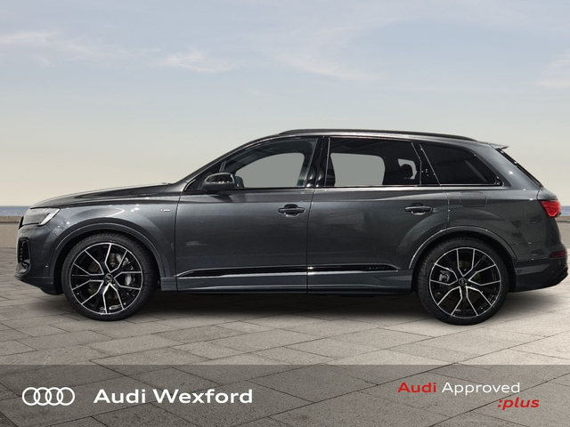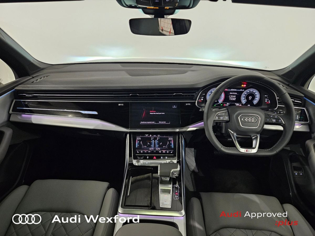 Audi Q7 Audi Q7 SUV S line TFSI e quattro 290 kW tiptronic *NEW CAR AVAILABLE FOR IMMEDIATE DELIVERY* • Audi Music Interface • Audi Sound System • Bluetooth Interface • MMI SAT Nav • Touchscreen Stereo • 4 Wheel Drive • Audi Drive Select • Audi Stop/Start • Power Assisted Steering • Quattro Four Wheel Drive • Alloy Wheels • Black Styling Pack • Front Fog Lights • Metallic Paint • S-Line Body Styling • Air Conditioning • Ambient Lighting • Button Start-Stop • Climate Control • Dual Climate control • Electric Windows • Front Footwell Illumination • Front/Rear Floor Mats • Multi-Function Steering Wheel • Rake/Reach Adjustable Steering Column • Split Fold Rear Seats • Electrically Adjustable Seats • Heated Seats • Leather Interior • Leather Steering Wheel • Lumbar Support • ABS • Active Lane Assist • Alarm • Anti-Lock Brake System • Anti Theft System • Auto Lights and Wipers • Child Locks • Daytime Running Lights • High Beam Assist • Hill Descent Assist • Hill Hold Assist • Immobilizer • ISO Fix • ISO Fix Front Passenger and Rear Seat Preparation • LED Headlights • Light and Rain Sensor • Multiple Airbags • Rear Park Assist • Reverse Camera • USB • Front and Rear Park Sensors • Audi Connect • Audi Lane Assist • Audi Smartphone Interface • Audi Virtual Cockpit • Reverse Camera • USB charging ports