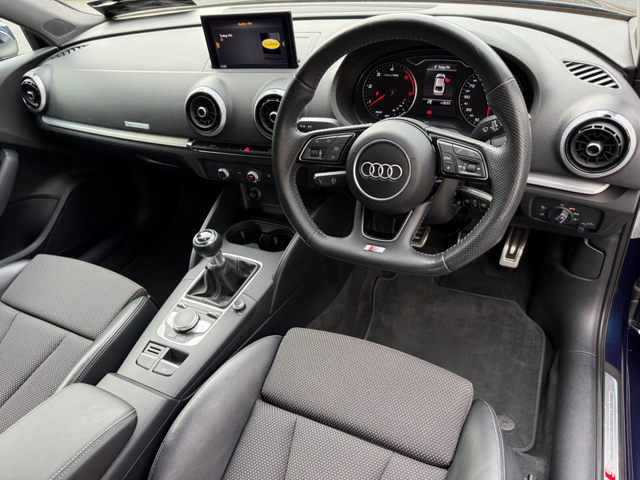 Immaculate 182 Audi A3 Saloon S-Line! Stunning Car All Round Full S-Line Interior with S-Line embossed seats Serviced Timing belt replaced Blue Metallic Paint 4 Excellent Tyres Valeted Parking Sensors Bluetooth Phone and Media Part Exchange welcome Contact us on 087 9878860 for more details. Please call or text to avoid disappointment. Viewings by appointment only. Please contact one hour in advance of arrival. Visit us on Facebook, Instagram or GaryGilesCars.ie! Gary Giles Cars Air conditioning, Armrest, Keyless entry, Electric side mirrors, Electric windows, Electric handbrake, Multi-function steering wheel, Spare tyre, Android Auto, Apple CarPlay, Bluetooth, 12v power outlet, Radio, USB connection (front), Cruise control, Rear parking sensors, Remote boot release, Start-stop system, Alloy wheels, Leather steering wheel, Sports seats, Tinted windows, Daytime running lights, Fog lights, LED headlights, ABS, Anti collision system, Emergency brake assist, Central locking, Remote central locking, Driver-side airbag, Immobilizer, Isofix, Tyre pressure monitor, Passenger-side airbag, Seat belt warning, Side airbag, Stability control, Traction control, Sport suspension