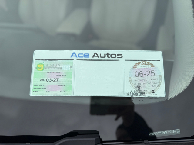 CAR NUMBER - 1370 Welcome to Ace Autos, an AA & SIMI Approved Dealership. We are one of Irelands leading providers of quality used Cars. All of our Cars are fully inspected by our AA Approved Mechanics and all vehicle's are Cartel History checked and greenlight verified. We also supply Auction sheets to verify Mileage / History on our Japanese Imports. Take a look at our new arrival, This 2019 BMW 3 SERIES SPORT - 2.0L DIESEL - MANUAL - 12M WARRANTY!! This car will be sold on Irish Plates, Fully Serviced, Valeted, NCT tested and has 12 Month warranty option available. **12 MONTH WARRANTY ONLY €295** We also offer Nationwide delivery and Competitive Finance options. OFFICE 045- 579026 LOCATION OSBERSTOWN BUSINESS PARK, NAAS, CO KILDARE Please visit our website - "BUYING INFORMATION" When shopping at Ace Autos. WWW.ACEAUTOS.IE Features Include - 3 Month Warranty, 6 Month Warranty, 12 Month Warranty, Trade in accepted, Air Conditioning, Central Locking, Immaculate condition, Electric Windows, Airbag, Alarm, Alloy Wheels, Cruise Control, Electric Mirrors, Fog Lamps, Immobiliser, Leather Upholstery, Full Leather, Privacy Glass, Sports Seats, Heated Seats, Automatic Wipers, Automatic Lights, Centre Armrest, Luggage Cover, Multi-function steering wheel, Climate Control, Satellite Navigation, Traction Control, Multiple Air Bags, Anti-Theft System, Parking Sensors, Bluetooth, Remote Central Locking, EBD, Isofix, Hill holder, Roadside assistance, History Checked, Finance Checked, Apple Car Play, Keyless Entry, Heated Front Seats, Reversing Camera, Wireless Smartphone Control, Active Safety Braking / City Brake / Collision Alert, Stop/Start Button, Touch Screen Media Control, Drive Mode Selector, Dual Zone Climate Control, Daytime Running Lights, External Devices Connectivity, Cup holders, Remote boot/hatch/rear door release, Stability control