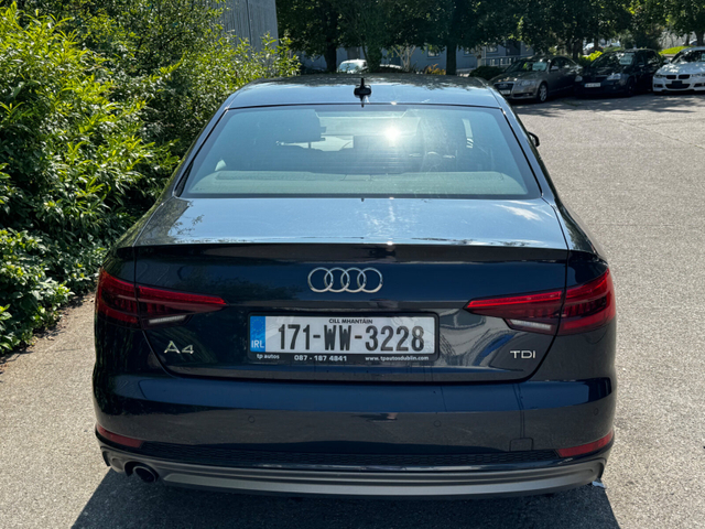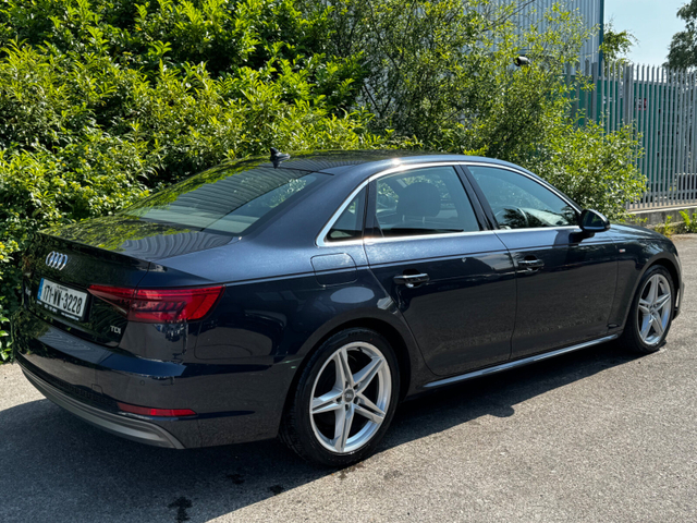 Welcome to Divine Motors Introducing this beautiful example: Audi A4 2017 -S Line model -S Tronic/ Automatic transmission -Xenon Automatic headlights -Half leather S line seats -Multifunctional steering wheel -Parking sensors -Paddle shift on steering wheel -3 way climate control -Audi drive select -Nationwide delivery available -Warranty To arrange a viewing please contact Adam on 087 3333 919. Located in Naas- W91 C1P1. Sale price- €22,950. Trade in price- €24,950. Air conditioning, Climate control, Armrest, Keyless entry, Electrically adjustable seats, Electric side mirrors, Electric windows, Electric handbrake, Lumbar support, Multi-function steering wheel, Spare tyre, Split rear seats, Gear shift paddles, Bluetooth, 12v power outlet, Radio, USB connection (front), Wifi, Cruise control, Navigation system, Rear parking sensors, Remote boot release, Speed limiter, Start-stop system, Voice control, Alloy wheels, Leather steering wheel, Sports seats, Tinted windows, Auto lights (dusk sensor), Bi-xenon headlights, Daytime running lights, Fog lights, ABS, Anti collision system, Emergency brake assist, Central locking, Remote central locking, Driver-side airbag, Immobilizer, Isofix, Tyre pressure monitor, Passenger-side airbag, Seat belt warning, Side airbag, Stability control, Traction control, Sport suspension