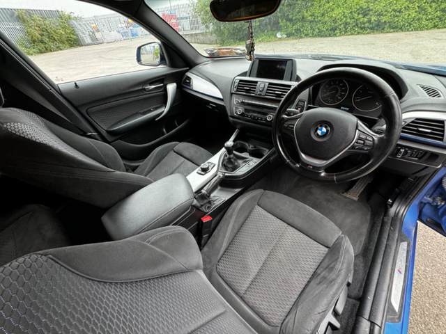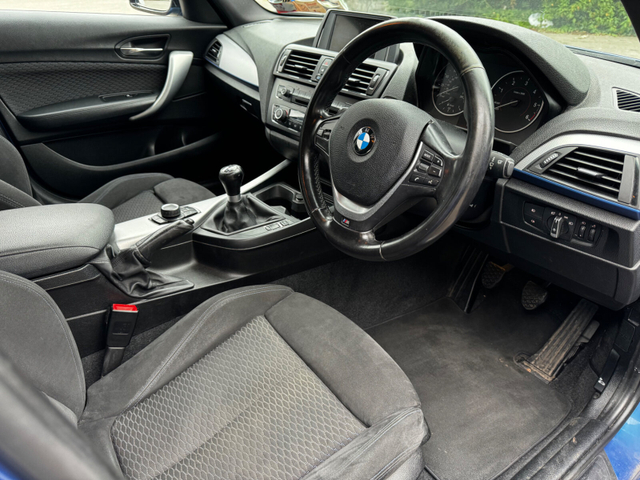 Welcome to Divine Motors Introducing this lovely example BMW 1 Series -2 Litre diesel -Manual gearbox -M Sport -Estoril blue- a beautiful colour! -Sports seats -Black interior -New NCT -Tax until November -Recently serviced -Upgraded alloy wheels -Rear privacy glass -2 Keys -Multifunctional steering wheel -Automatic lights -Front and rear fog lights To arrange a viewing on this car please contact Adam on 087 3333 919. Located in Naas- W91 C1P1. Thanks, Divine Motors Air conditioning, Keyless entry, Electrically adjustable seats, Electric side mirrors, Electric windows, Lumbar support, Multi-function steering wheel, Rain sensor, Bluetooth, CD, 12v power outlet, Radio, USB connection (front), Hill hold assist, Remote boot release, Start-stop system, Alloy wheels, Leather steering wheel, Sports seats, Tinted windows, Auto lights (dusk sensor), Daytime running lights, ABS, Alarm system, Emergency brake assist, Central locking, Remote central locking, Driver-side airbag, Immobilizer, Isofix, Tyre pressure monitor, Passenger-side airbag, Side airbag, Stability control, Traction control
