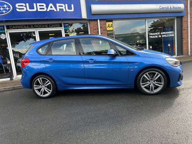 Beautiful BMW 2 Series Active Tourer M-Sport Hybrid Automatic 4x4 Stunning Estoril Blue Black Dakota Leather Full M-Sport Key Features Model BMW 2 Series Active Tourer M-Sport Hybrid Drive Automatic 4x4 (All-Wheel Drive) Plug-in Hybrid with over 220 BHP / Road Tax Only €170/year NCT Valid until 03/2027 Tax until 02/2026 M-Sport Highlights Estoril Blue Exterior with Black Dakota Leather Interior Full-Length Panoramic Glass Sunroof -Heated Front Seats -Front & Rear Parking Sensors -Automatic Tailgate -Cruise Control & Dual-Zone -Climate Control - 5 Individual MPV-Style Seats with Large Boot Space Stylish, Sporty, Economical Practical Family Car and Fully Serviced with Verified Service History Comes with Assured Dealer Warranty Only One Previous Owner Rare Spec & Condition Trade-Ins Welcome Finance Available For more details, contact Carroll & Roche Quality Cars Phone 01 - 4642 444 Mobile 087 - 2375 370 WhatsApp 086 - 266 3737 .
