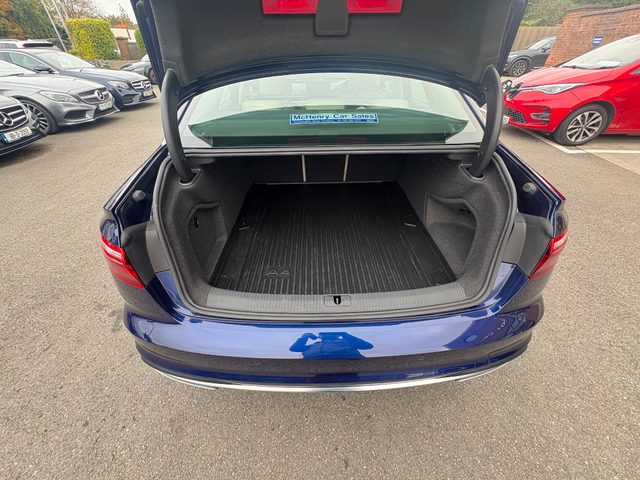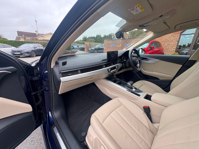 Call Adam or Barry-John on 0862062981 or 01 8017777 to find out more about this stunning Audi A4 Auto, We can offer a click and deliver or click and collect service if a customer wishes, This car comes fully serviced, warrantied, trade ins accepted and finance can be arranged. We are a SIMI approved dealership who specializes in premium cars and we are located just 10 minutes from Blanchardstown Shopping Centre just off the M3. Our Eircode is A85 DK15. We are located on Dunshaughlin Main street on the Navan side of the village. Bluetooth,Centre Armrest,Climate Control,Cruise Control,Electric Mirrors,Electric Seats,Electric Windows,Electronic handbrake,Folding rear seats,Heated Seats,Air Conditioning,Anti-Theft System,Central Locking,Multiple Air Bags,Parking Sensors,Remote Central Locking,Traction Control,Brake Assist System,Alloy Wheels,Metallic Paint,All-Leather Seats,Heated Front Seats,Multi-Function Steering Wheel,Selectable Drive Mode,Stop/Start Button,Automatic Lights,Automatic Wipers,Collision Alert,Daytime Running Lights,Engine Immobiliser,Hill-Start Assist,Isofix Points,Leather Upholstery,USB Connection,AUX Connection,Cup Holders
