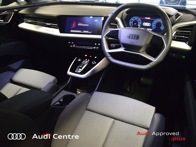 Audi Q4 e-tron 45 Sport Price new was € 59,980 • Audi Music Interface • Audi Sound System • Bluetooth Interface • Audi Drive Select • Audi Stop/Start • Adaptive Cruise Control • Auto Handbrake • 19"Alloys • Contrasting Roof Arch • High Gloss Pack • Metallic Paint • Ambient Lighting • Armrest • Button Start-Stop • Climate Control • Door Sills with Aluminium Inlays • Electric Mirrors Heated Memory • Electric Windows • Front/Rear Floor Mats • Onboard Computer • Rake/Reach Adjustable Steering Column • Heated Seats • ABS • Alarm • Child Locks • Daytime Running Lights • Electronic Stability Programme (ESP) • Hill Hold Assist • Immobilizer • ISO Fix Front Passenger and Rear Seat Preparation • LED Headlights • Light and Rain Sensor • Multiple Airbags • Power Boot Opening and Closing • Reverse Camera • USB • Voice control • Speed Limiter • Front Sports Seats • Assist package Drive and Park plus • Front emergency brake assist • Lane departure warning with emergency assist • Swerve assist and turn assist • LED rear lights with dynamic turn signal • Audi Smartphone Interface • Audi Virtual Cockpit