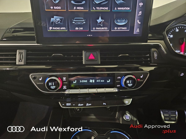 Audi A4 35 TDI 163HP S Tronic S line €452p/m • Bluetooth Interface • Audi Drive Select • Cruise Control • Alloy Wheels • Air Conditioning • Button Start-Stop • Climate Control • Electric Windows • Leather Interior • Lumbar Support • ISO Fix • Reverse Camera • Reversing Sensors • Front and Rear Park Sensors • Voice control • Audi Connect • Reverse Camera