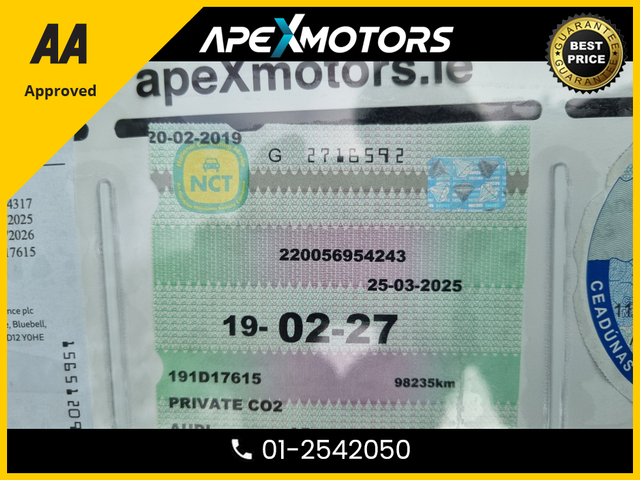 Welcome to APEXMOTORS.ie , an AA APPROVED INDEPENDENT DEALERSHIP, with all the Features you expect from the Franchise Dealerships We are one of Irelands Leading Providers of Quality Approved Used Cars and Light Commercials, All Vehicles are fully Inspected by AA Approved Mechanics , Come Fully Serviced and Professionally Valeted, All Vehicles are Cartell History Checked and Greenlight Verified, and Sold with Warranty, We consider ourselves best priced in the Market Nationwide, Full Finance options are also available, we work with all provider to offer you the Best solutions for your needs * FINANCE ARRANGED * SPORTBACK 35 TDI 150 S 4DR A S-TRONIC LINE * NCT FEB-27 * LOW TAX OCT-25 * 6-STAMPS SERVICE HISTORY * AA APPROVED * 101 SAFETY CHECKLIST * AUTOMATIC (DSG) * IMMACULATE * HEATED SEATS * COLOUR REVERSE CAMERA * TOP-SPEC S-LINE * SPORTBACK * LOW LOW KMs * CRUISE CONTROL and SPEED LIMITER * 3-KEYS * 12-MONTH ROADSIDE ASSIST * VERY CAREFUL OWNER * CARTELL HISTORY CHECKED * FULLY SERVICED * TRADE IN WELCOME * www.apexmotors.ie * CALL 01-2542050 or * WHATTSAPP 087-18-777-81 * WE ARE AN *AA* APPROVED USED CAR DEALERSHIP * ALL CARS GO THROUGH *AA APPROVED* 101 POINT SAFETY CHECKLIST * EXCESS 300 VEHICLES IN STOCK * ALL CARS IN FIRST CLASS CONDITION INSIDE & OUT * ALL VEHICLES ARE NCT TESTED, SERVICED, PROFESSIONALLY VALETED * COMPREHENSIVE AND EXTENDED WARRANTY AVAILABLE * CARTELL DOCUMENTED VERIFICATION * NATIONWIDE DELIVERY AVAILABLE * LOCATED -- EXIT-6 M50 (EIRCODE A86 YC84) * PLEASE CALL OUR SALES TEAM TODAY 01-2542050 or WHATTSAPP 087-1877781 * MON-FRI 2-6PM (Morning by appointment) and ALL DAY SAT 9-5PM * www.ApeXmotors.ie * Because we value your Business.. Full Service History, Perfect working order, Price Or Near Offer, 3 Month Warranty, 6 Month Warranty, 12 Month Warranty, Trade in accepted, Air Conditioning, Central Locking, CD Player, Immaculate condition, Electric Windows, Airbag, Alarm, Alloy Wheels, Cruise Control, Electric Mirrors, Electric Seats, Fog Lamps, Immobiliser, Leather Upholstery, Sunroof, Rear Spoiler, Full Leather, Half Leather, Privacy Glass, Sports Seats, Heated Seats, Automatic Wipers, Automatic Lights, Centre Armrest, Luggage Cover, Multi-function steering wheel, Satellite Navigation, Traction Control, Metallic Paint, Multiple Air Bags, Xenon Lights, Sports Suspension, Side Impact Protection, Anti-Theft System, Parking Sensors, Bluetooth, Brand New Tyres, Remote Central Locking, EBD, Electronic handbrake, Folding rear seats, Isofix, Hill holder, Roadside assistance, History Checked, Finance Checked, Apple Car Play, Android Auto, Mirror Link, Keyless Entry, Panoramic Sunroof, Heated Front Seats, Reversing Camera, Motorised Tailgate, Front Parking Sensors, Lane Departure Warning, Blind Spot Monitoring System, Wireless Smartphone Control, Autonomous Drive / Pilot Assist, Electro Chrome Rear View Mirror, Speed Sign Recognition & Recommendation, Active Safety Braking / City Brake / Collision Alert, Heated Steering Wheel, Adaptive Cruise Control, Stop/Start Button, Touch Screen Media Control, Gesture Control, Driver Fatigue Warning, Drive Mode Selector, Dual Zone Climate Control, Daytime Running Lights, Manufacturer Warranty, Manufacturer Warranty Remaining, 2 Keys, Main Dealer Service History, External Devices Connectivity, Cup holders, Remote boot/hatch/rear door release, Stability control
